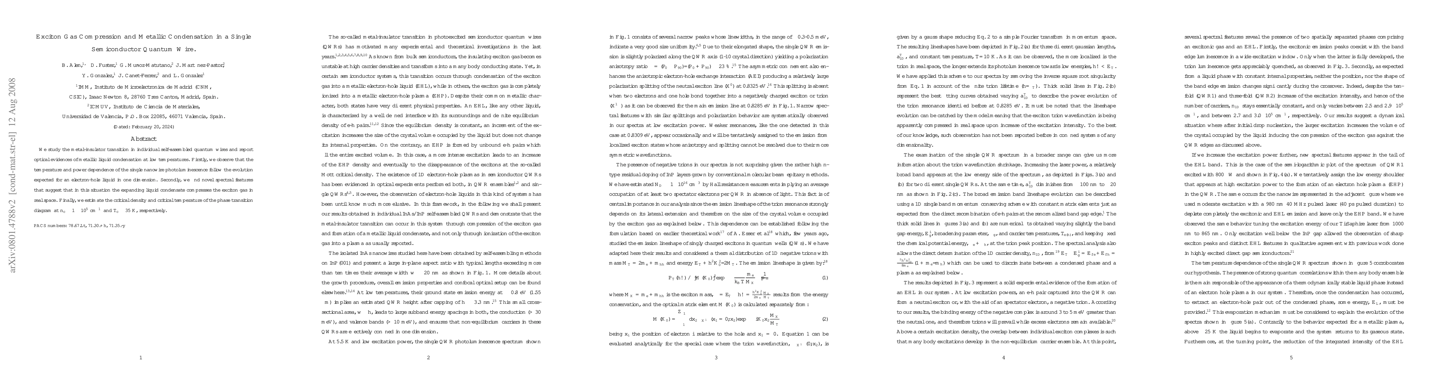 We study the metal-insulator transition in individual self-assembled quantum wires and report optical evidences of metallic liquid condensation at low temperatures. Firstly, we observe that the temperature and power dependence of the single nanowire photoluminescence follow the evolution expected for an electron-hole liquid in one dimension. Secondly, we find novel spectral features that suggest that in this situation the expanding liquid condensate compresses the exciton gas in real space. Finally, we estimate the critical density and critical temperature of the phase transition diagram at $n_c\sim1\times10^5$ cm$^{-1}$ and $T_c\sim35$ K, respectively.