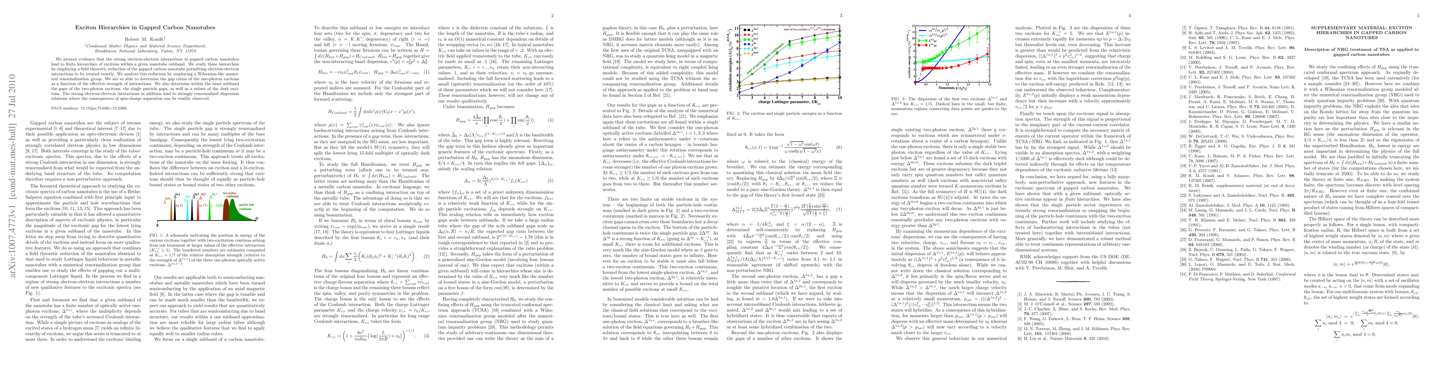 This paper investigates the exciton hierarchies in gapped carbon nanotubes, revealing how strong electron-electron interactions create distinct exciton levels within subbands. Using a field theoretic approach and a Wilsonian-like numerical renormalization group, the study determines the gap ratios of various excitons and observes the effects of spin-charge separation.