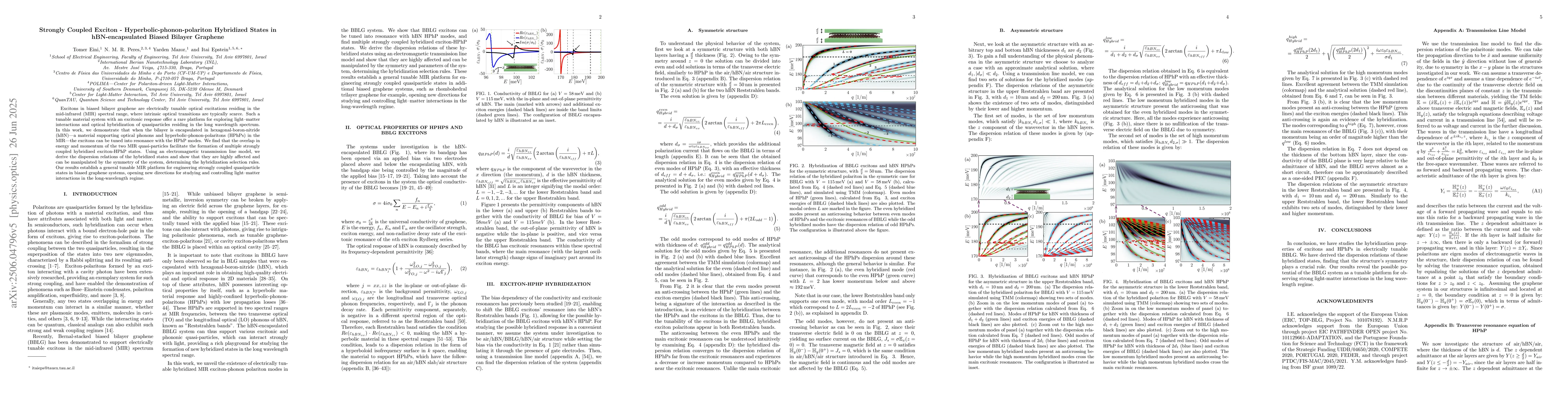 The research employs electromagnetic transmission line models to derive dispersion relations of hybridized exciton-HPhP states in biased bilayer graphene encapsulated in hBN.