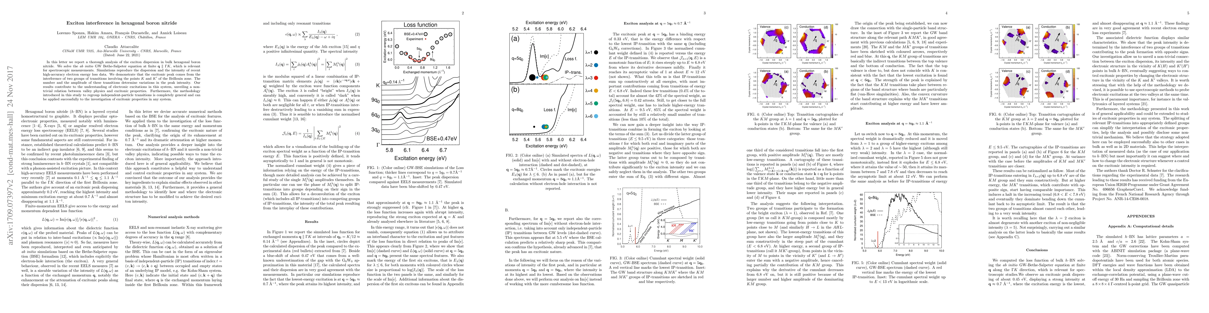 In this letter we report a thorough analysis of the exciton dispersion in bulk hexagonal boron nitride. We solve the ab initio GW Bethe-Salpeter equation at finite $\mathbf{q}\parallel \Gamma K$, and we compare our results with recent high-accuracy electron energy loss data. Simulations reproduce the measured dispersion and the variation of the peak intensity. We focus on the evolution of the intensity, and we demonstrate that the excitonic peak is formed by the superposition of two groups of transitions that we call $KM$ and $MK'$ from the k-points involved in the transitions. These two groups contribute to the peak intensity with opposite signs, each damping the contributions of the other. The variations in number and amplitude of these transitions determine the changes in intensity of the peak. Our results contribute to the understanding of electronic excitations in this systems along the $\Gamma K$ direction, which is the relevant direction for spectroscopic measurements. They also unveil the non-trivial relation between valley physics and excitonic dispersion in h--BN, opening the possibility to tune excitonic effects by playing with the interference between transitions. Furthermore, this study introduces analysis tools and a methodology that are completely general. They suggest a way to regroup independent-particle transitions which could permit a deeper understanding of excitonic properties in any system.
