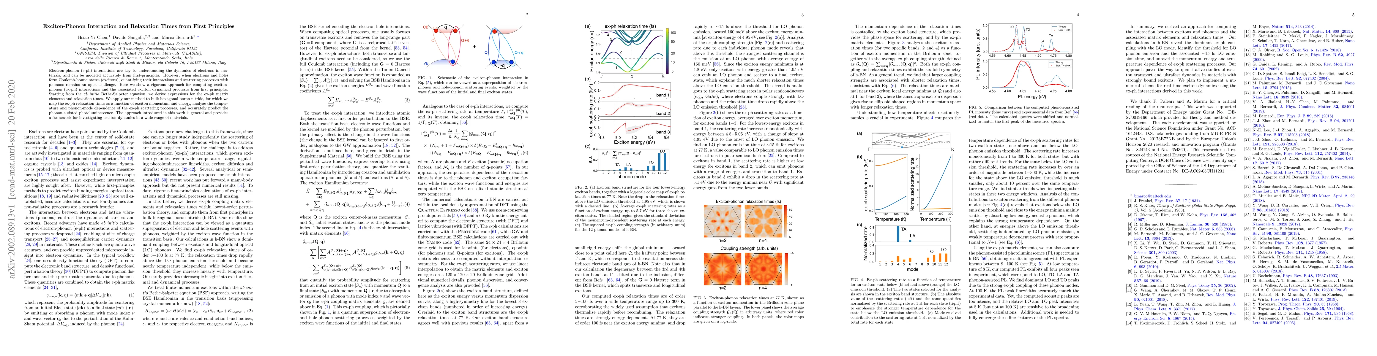 This paper presents a first-principles method to compute exciton-phonon interactions and relaxation times, applying it to hexagonal boron nitride to analyze exciton dynamics, phonon-assisted photoluminescence, and the temperature and phonon-mode dependence of exciton-phonon scattering processes. The proposed framework is general and can be extended to study exciton dynamics in various materials.