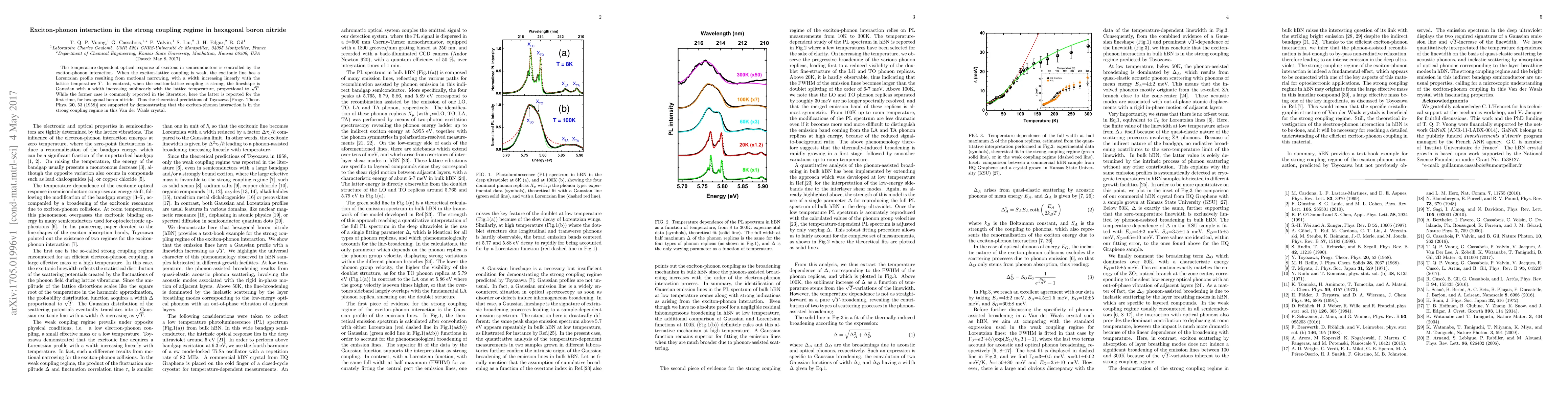 This research reports for the first time the Gaussian lineshape of excitons in hexagonal boron nitride, indicating strong exciton-phonon coupling. This sublinear temperature dependence confirms theoretical predictions of Toyozawa, showcasing the material's unique strong coupling regime.