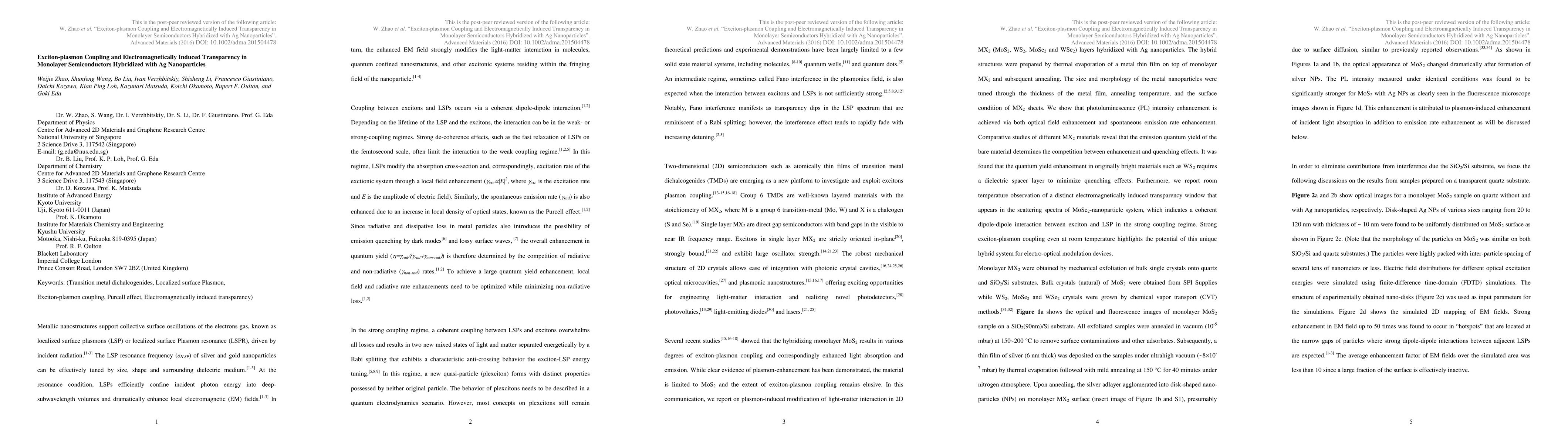 This paper investigates the exciton-plasmon coupling in 2D semiconductors like MoS2 and WS2 hybridized with silver nanoparticles, demonstrating significant photoluminescence enhancement and the emergence of electromagnetically induced transparency due to coherent exciton-plasmon interactions. The study highlights the potential of such hybrid systems for advanced optoelectronic applications and fundamental studies in strong coupling regimes.