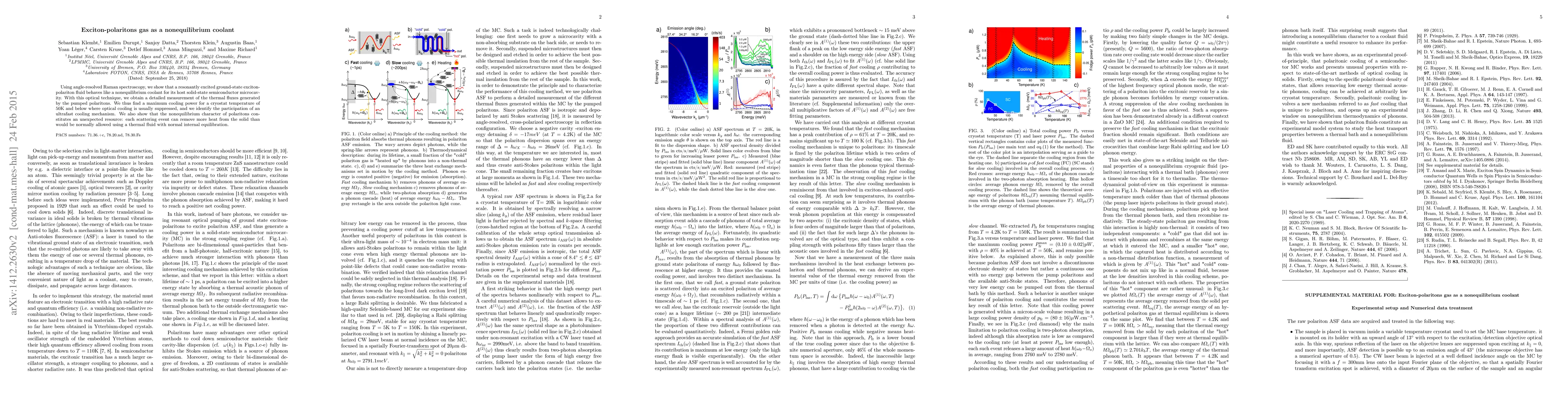 Using angle-resolved Raman spectroscopy, we show that a resonantly excited ground-state exciton-polariton fluid behaves like a nonequilibrium coolant for its host solid-state semiconductor microcavity. With this optical technique, we obtain a detailed measurement of the thermal fluxes generated by the pumped polaritons. We thus find a maximum cooling power for a cryostat temperature of $50$K and below where optical cooling is usually suppressed, and we identify the participation of an ultrafast cooling mechanism. We also show that the nonequilibrium character of polaritons constitutes an unexpected resource: each scattering event can remove more heat from the solid than would be normally allowed using a thermal fluid with normal internal equilibration.
