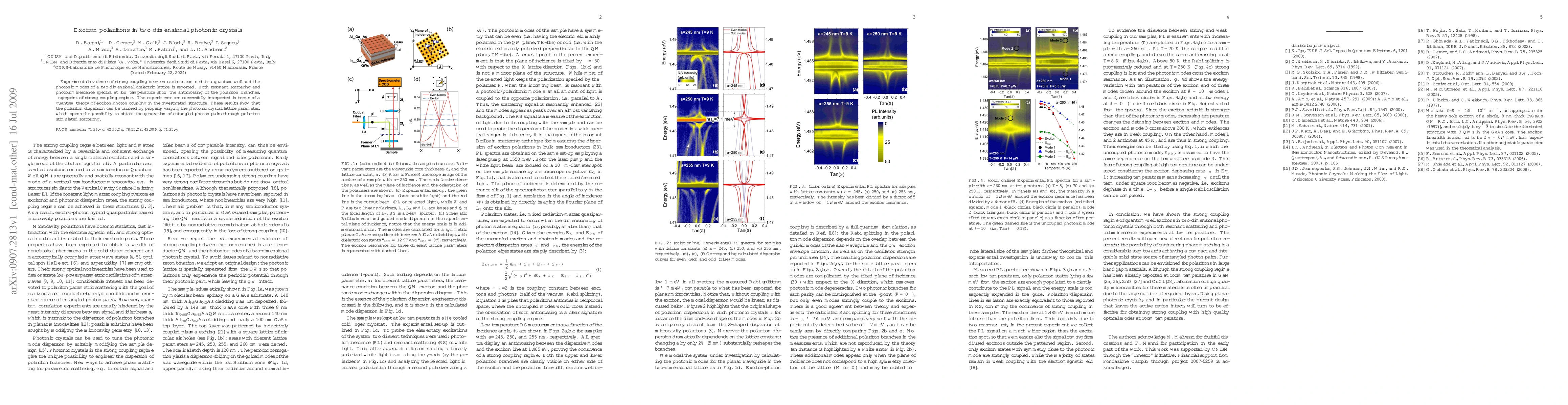 This research demonstrates strong coupling between excitons in a quantum well and photonic modes in a two-dimensional photonic crystal, showing clear anticrossing in spectra indicative of the polariton regime. The study confirms the potential to manipulate polariton dispersion by adjusting the photonic crystal lattice, paving the way for generating entangled photon pairs.