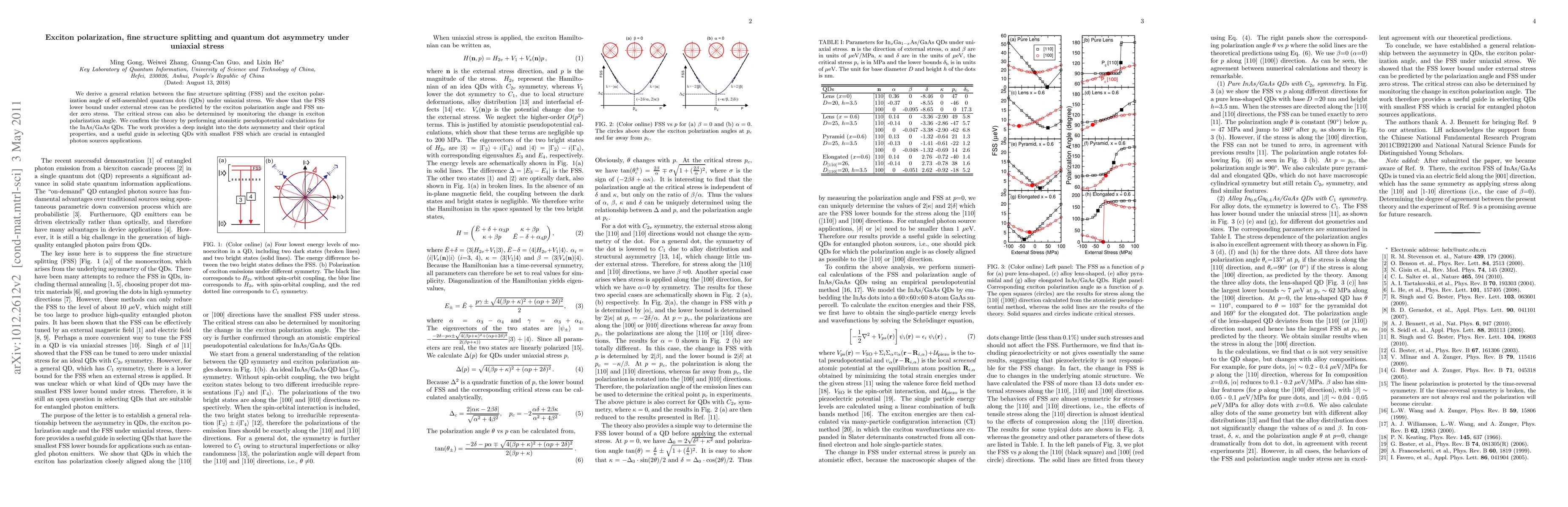 This paper establishes a relationship between fine structure splitting and exciton polarization in self-assembled quantum dots under uniaxial stress, showing that stress-induced changes in polarization can predict FSS behavior. Theoretical predictions are validated using atomistic calculations for InAs/GaAs QDs, offering insights into asymmetry and optical properties crucial for entangled photon source applications.
