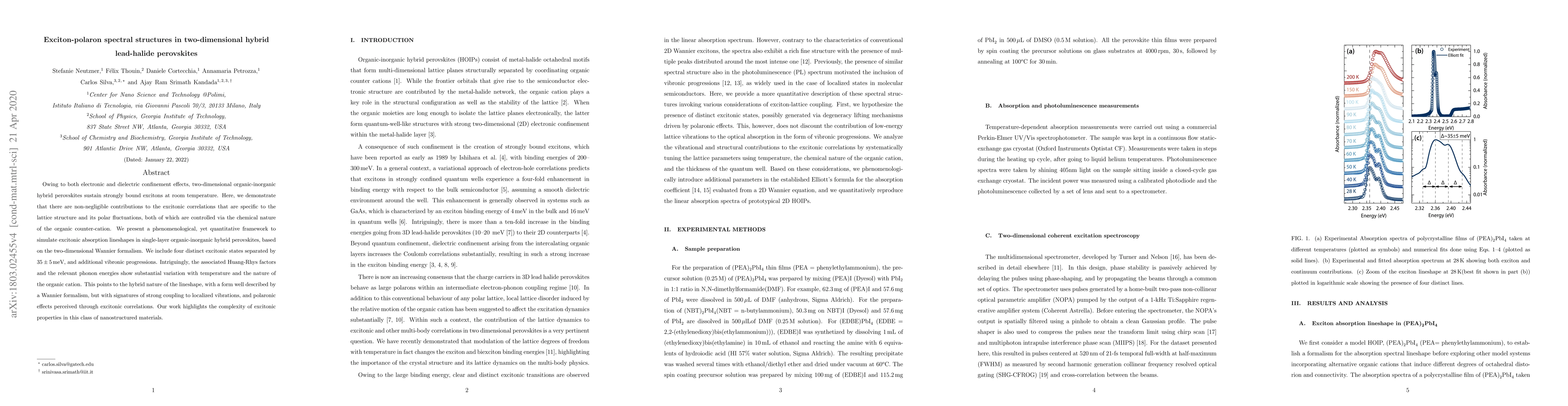 This research presents a framework to simulate excitonic absorption lineshapes in 2D hybrid perovskites, revealing four distinct excitonic states and polaronic effects due to lattice structure and cation nature. The findings highlight the complexity of excitonic properties in these materials.
