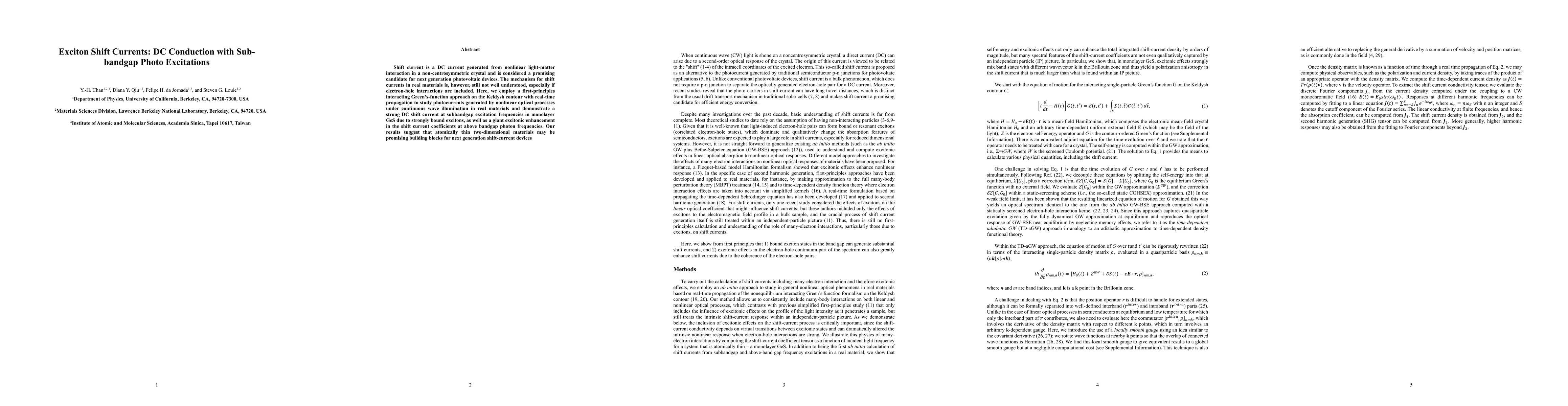 Researchers discovered a strong DC shift current in monolayer GeS due to strongly bound excitons at subbandgap excitation frequencies, suggesting atomically thin materials as promising building blocks for next generation photovoltaic devices.