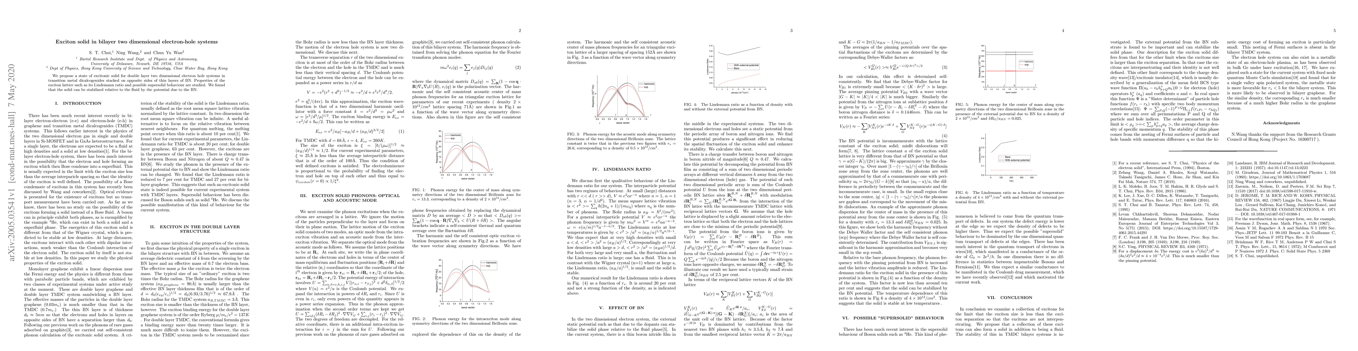 This paper proposes a novel excitonic solid state in bilayer two-dimensional electron-hole systems in transition metal dichalcogenides separated by BN layers. The study investigates the exciton lattice's properties and finds that the potential from BN layers can stabilize this solid state relative to a fluid state, potentially exhibiting supersolid behavior.