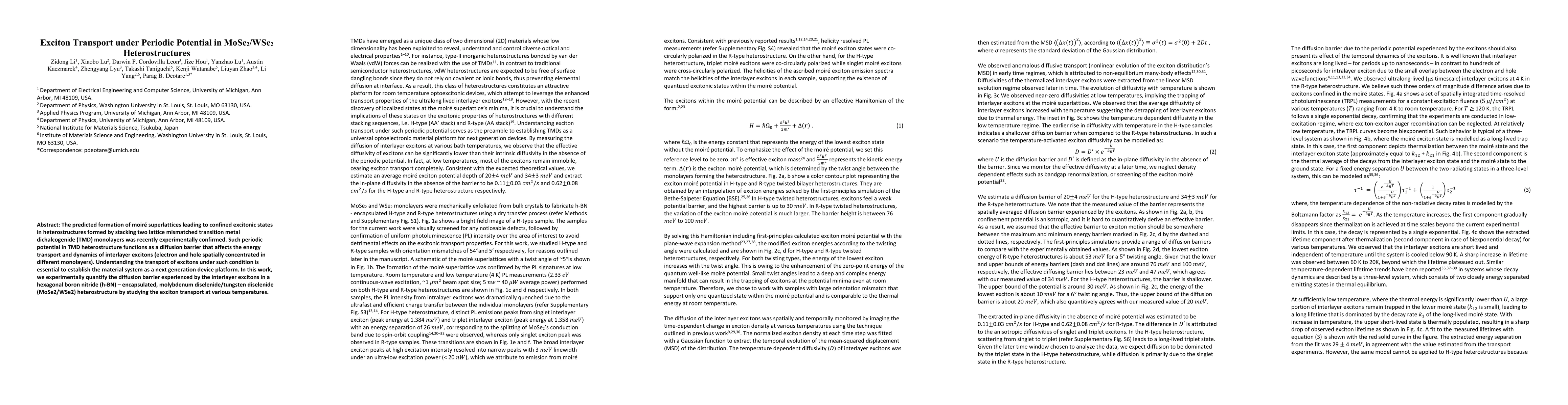 This study experimentally investigates the diffusion barrier affecting interlayer exciton transport in a MoSe2/WSe2 heterostructure with a periodic potential created by moiré superlattices, encapsulated in hexagonal boron nitride, across various temperatures to establish its potential as a next-generation device platform.