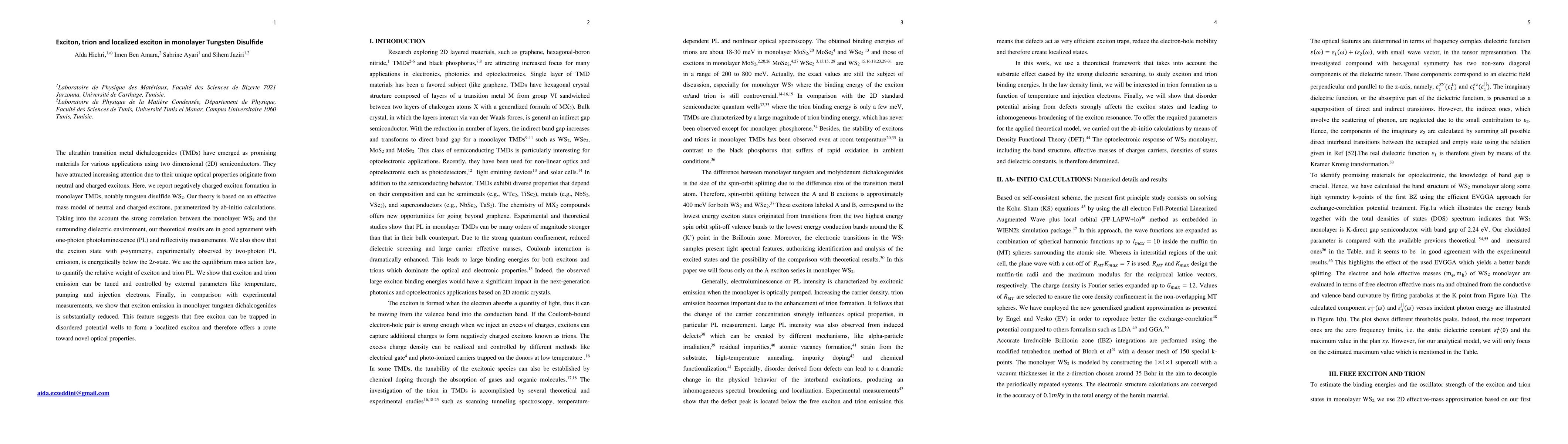 This paper investigates the optical properties of monolayer tungsten disulfide (WS2) using theoretical modeling and experimental measurements. It finds that negatively charged excitons, known as trions, can form in WS2 and that these exciton states can be manipulated by external factors like temperature and electron injection, potentially leading to novel optical properties.