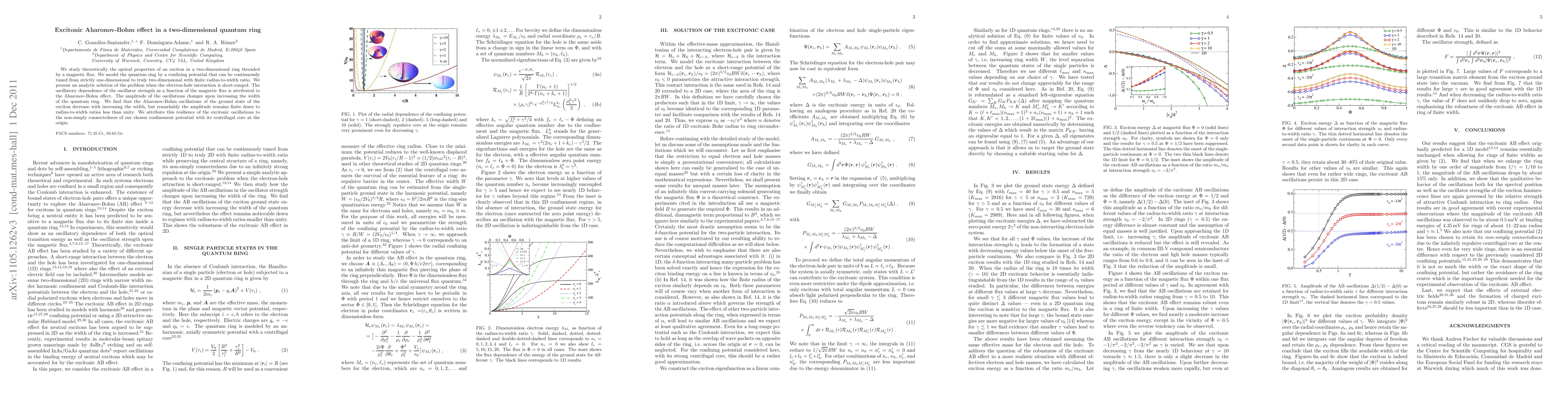 The paper presents an analytic solution for the excitonic Aharonov-Bohm effect in a two-dimensional quantum ring, providing insights into the oscillatory behavior of excitons under magnetic flux.
