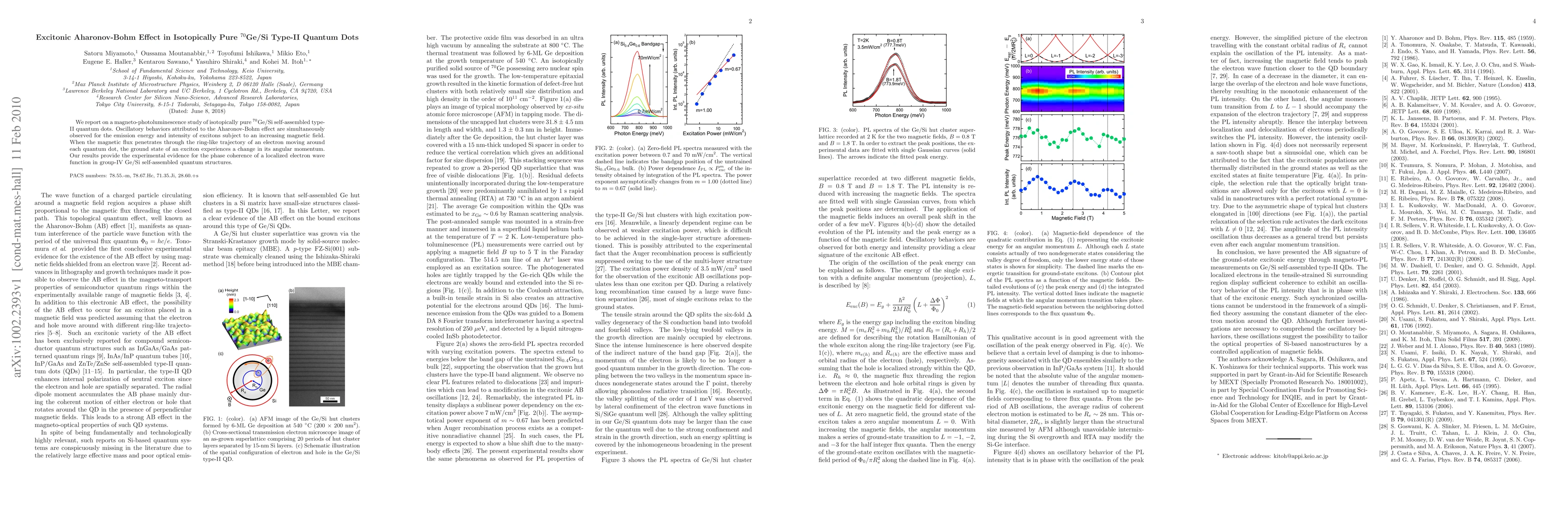 This paper reports on the magneto-photoluminescence study of isotopically pure 70Ge/Si type-II quantum dots, revealing oscillatory behaviors in exciton emission energy and intensity due to the excitonic Aharonov-Bohm effect. The findings demonstrate phase coherence of localized electron wave functions in Ge/Si quantum structures.