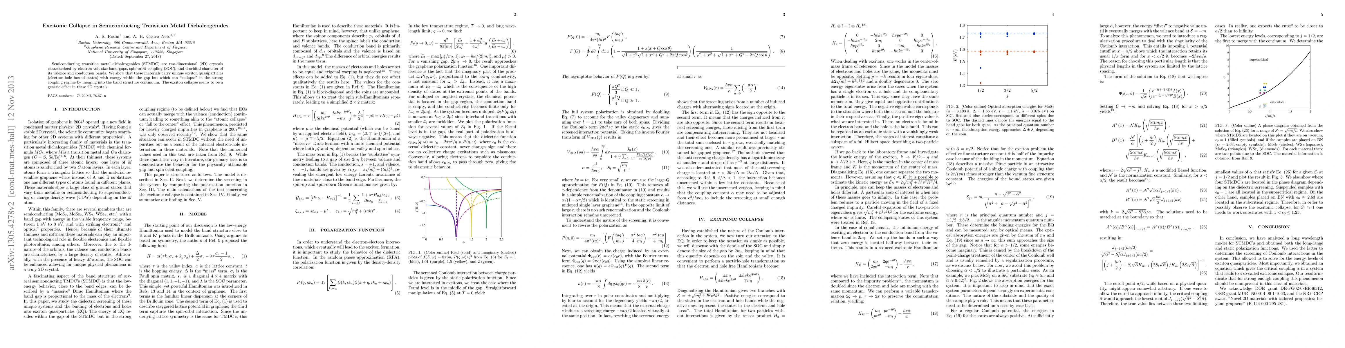 This paper investigates exciton quasiparticles in semiconducting transition metal dichalcogenides (STMDC), finding that they can "collapse" into the band structure continuum under strong coupling, a phenomenon observed across these two-dimensional crystals. This exciton collapse is identified as a common feature in STMDC materials.