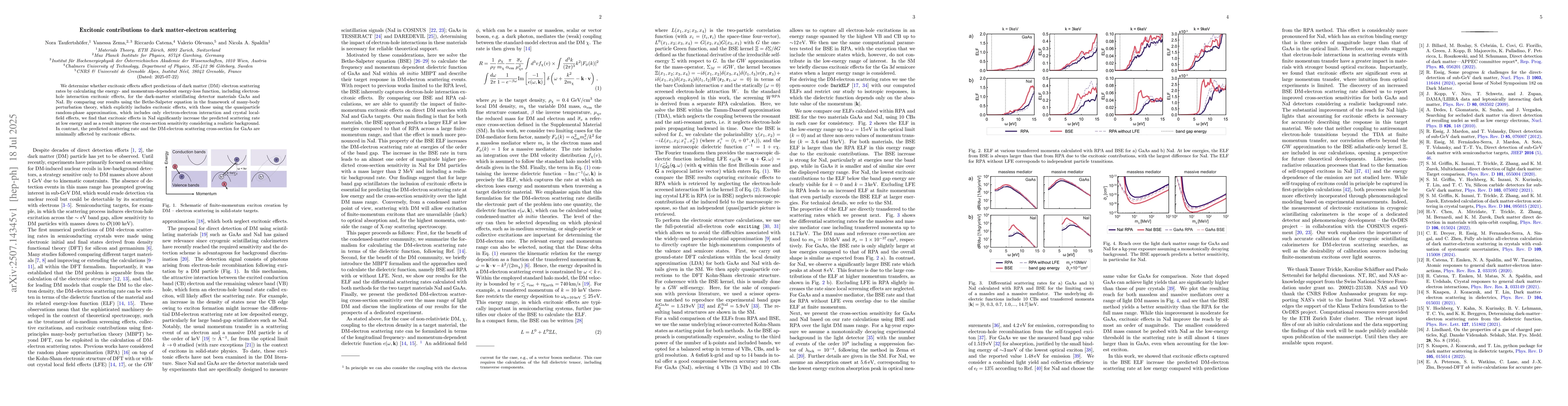 We determine whether excitonic effects affect predictions of dark matter (DM)-electron scattering rates by calculating the energy- and momentum-dependent energy-loss function, including electron-hole interaction excitonic effects, for the dark-matter scintillating detector materials GaAs and NaI. By comparing our results using the Bethe-Salpeter equation in the framework of many-body perturbation theory, which explicitly includes excitonic effects, with those using the quasiparticle random-phase approximation, which includes only electron-electron interaction and crystal local-field effects, we find that excitonic effects in NaI significantly increase the predicted scattering rate at low energy and as a result improve the cross-section sensitivity considering a realistic background. In contrast, the predicted scattering rate and the DM-electron scattering cross-section for GaAs are minimally affected by excitonic effects.