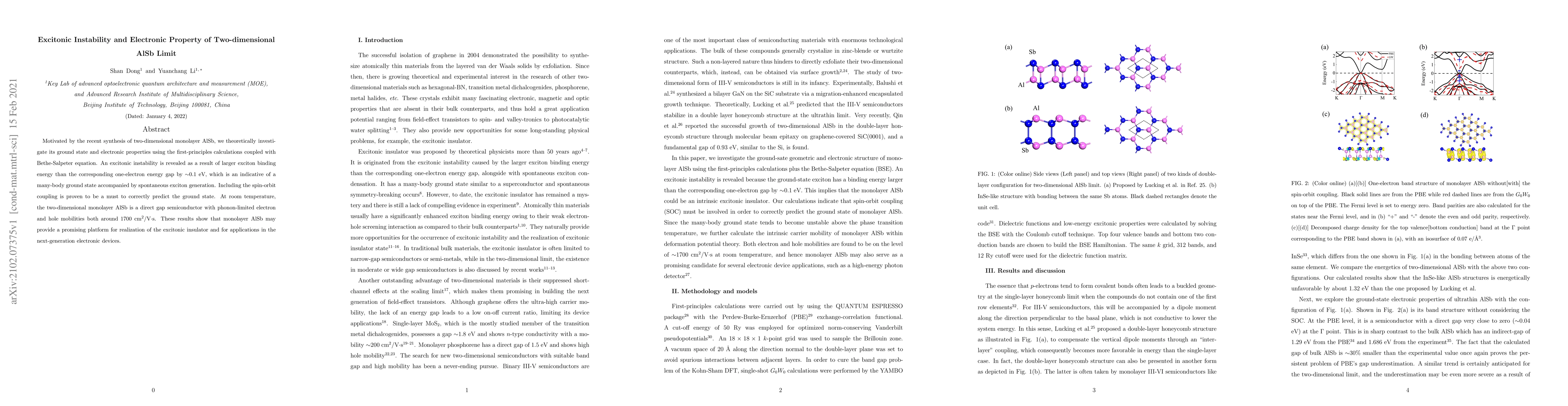 Researchers investigate two-dimensional AlSb, finding it to be a direct gap semiconductor with a high exciton binding energy, making it a promising platform for an excitonic insulator and next-generation electronic devices.