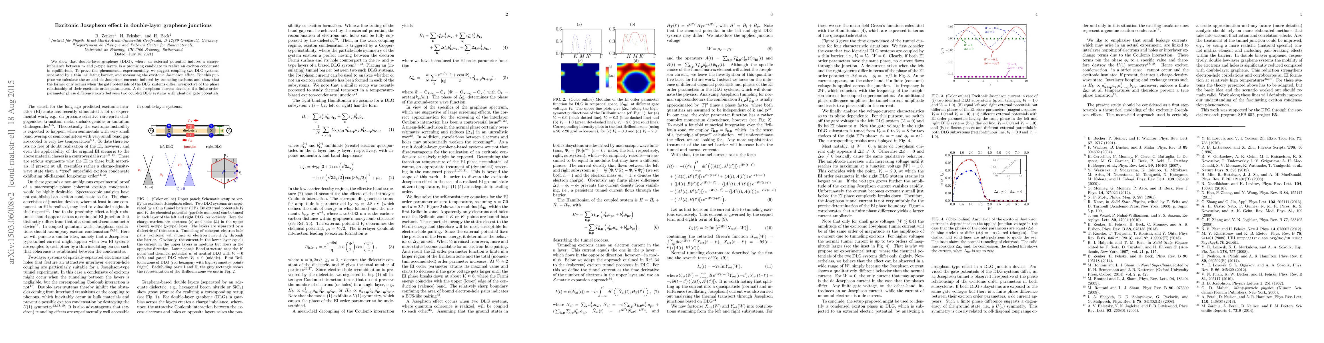 The paper presents a theoretical framework for analyzing the excitonic Josephson effect in double-layer graphene junctions, demonstrating how the Josephson current can be used to detect exciton condensate formation in each subsystem.