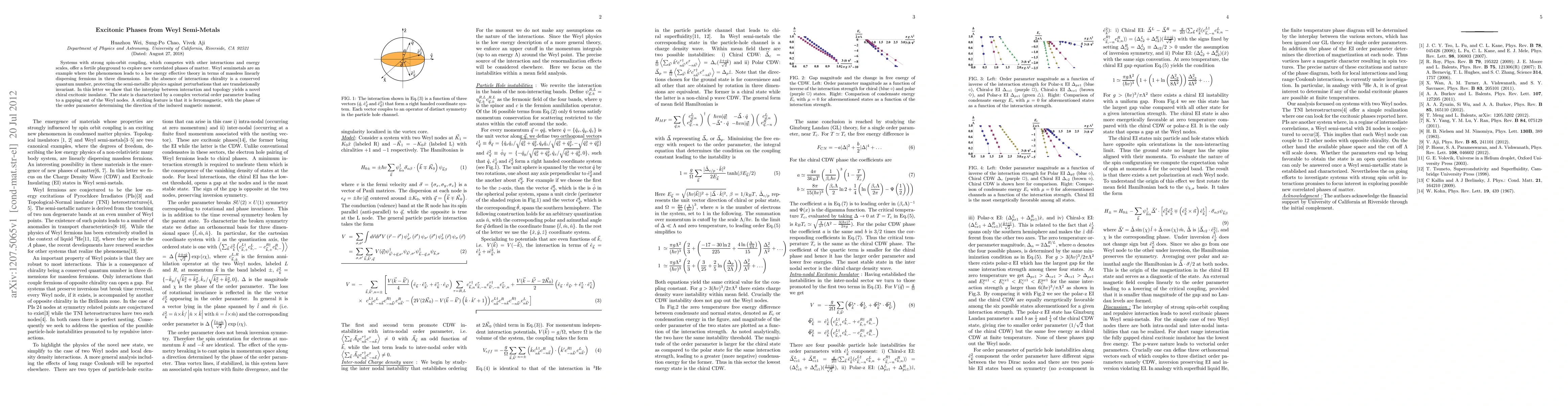 This research reveals how interactions in Weyl semimetals, characterized by strong spin-orbit coupling, can induce a novel chiral excitonic insulating phase with a complex vectorial order parameter. This phase features a gapped out Weyl node state and a ferromagnetic response, where the magnetic moment's direction is dictated by the phase of the order parameter.