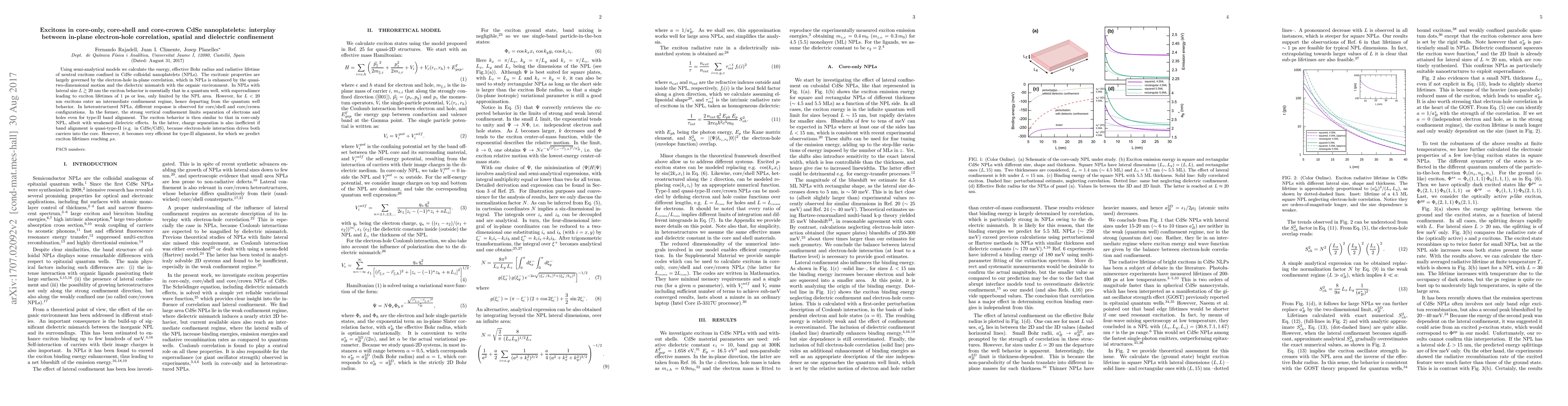 This paper investigates exciton properties in CdSe nanoplatelets using semi-analytical models, showing that exciton behavior varies with size and structure, transitioning from quantum well-like to intermediate confinement regimes. Core-shell structures maintain exciton behavior similar to core-only NPLs, while core-crown structures exhibit efficient charge separation for type-II band alignment.