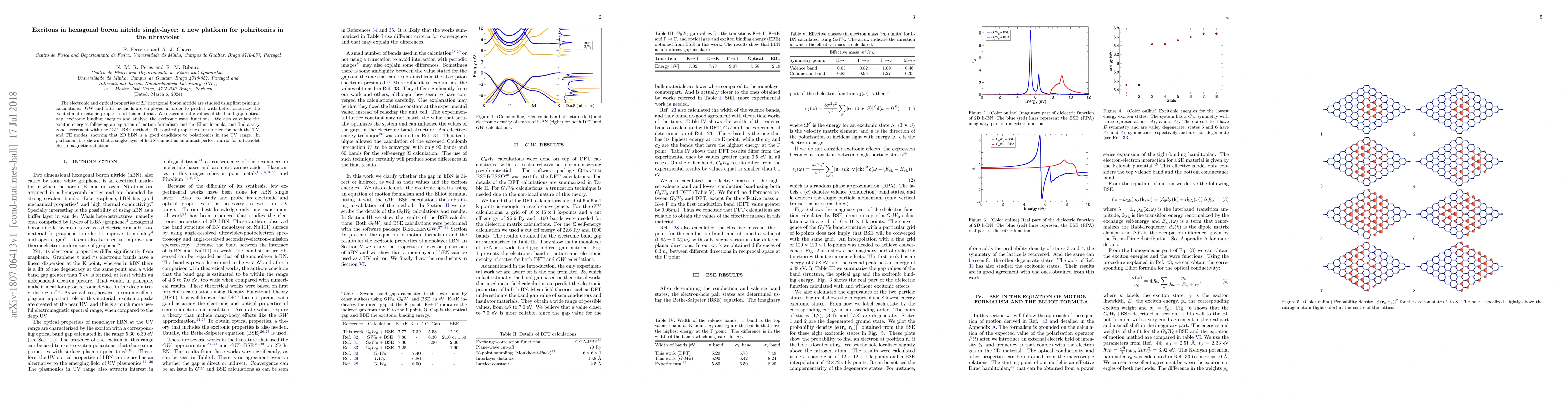 This paper uses first-principle calculations to study the electronic and optical properties of hexagonal boron nitride (hBN) monolayers, predicting their excitonic properties with GW and BSE methods. The findings suggest hBN is a promising material for polaritonics in the ultraviolet range, acting as an almost perfect mirror for UV radiation.