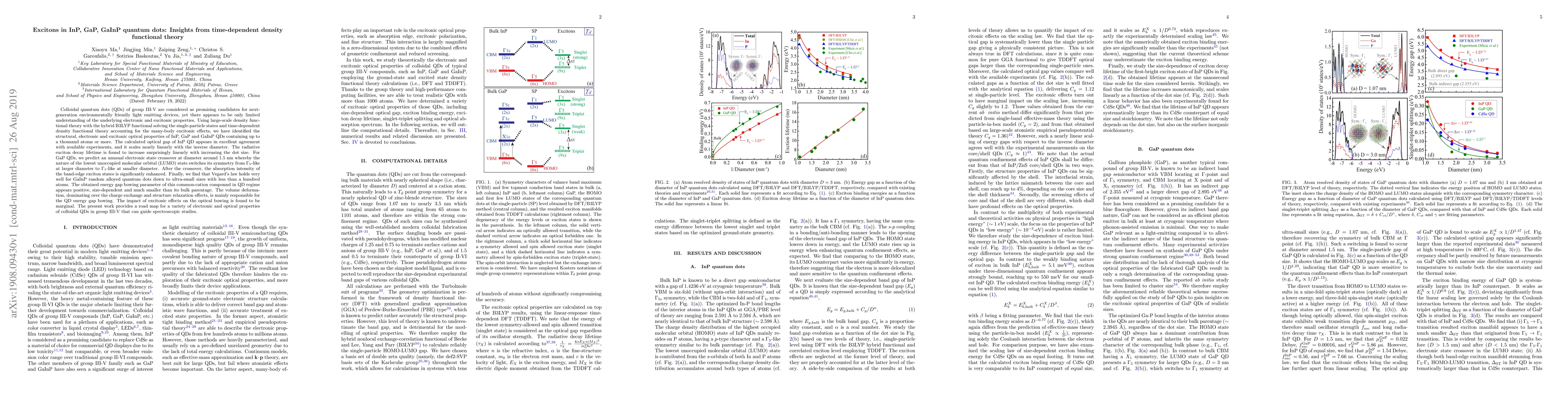 This study employs time-dependent density functional theory to investigate excitonic and electronic properties of InP, GaP, and GaInP quantum dots, revealing size-dependent optical gaps and unique electronic state transitions, and confirming the size-dependent energy gap bowing in GaInP quantum dots.