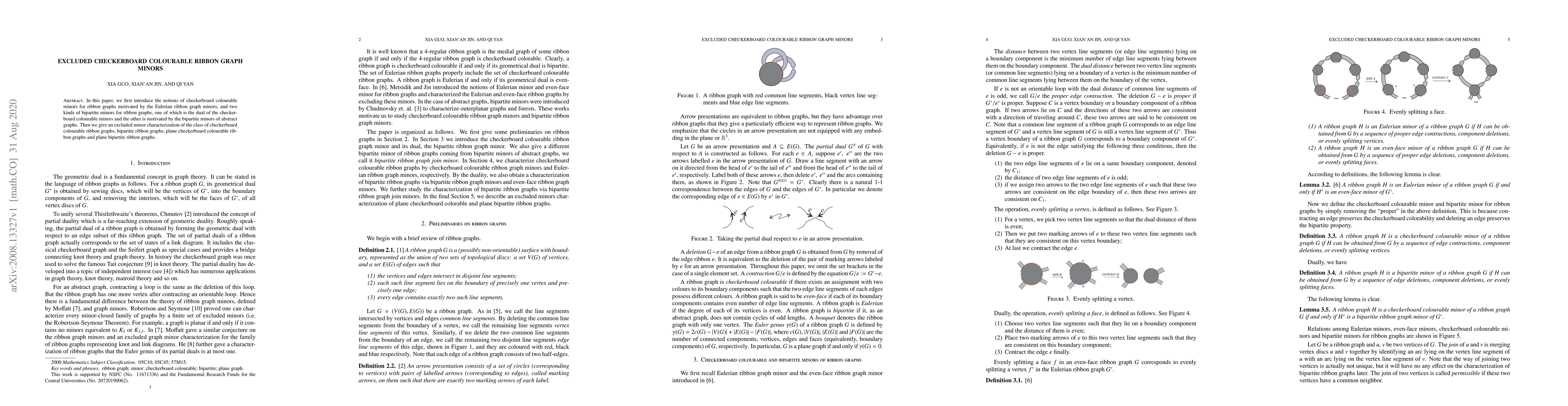 This paper introduces checkerboard colourable ribbon graph minors and establishes an excluded minor characterization for classes including checkerboard colourable, bipartite, plane checkerboard colourable, and plane bipartite ribbon graphs. The study is motivated by Eulerian ribbon graph minors and the bipartite minors of abstract graphs.