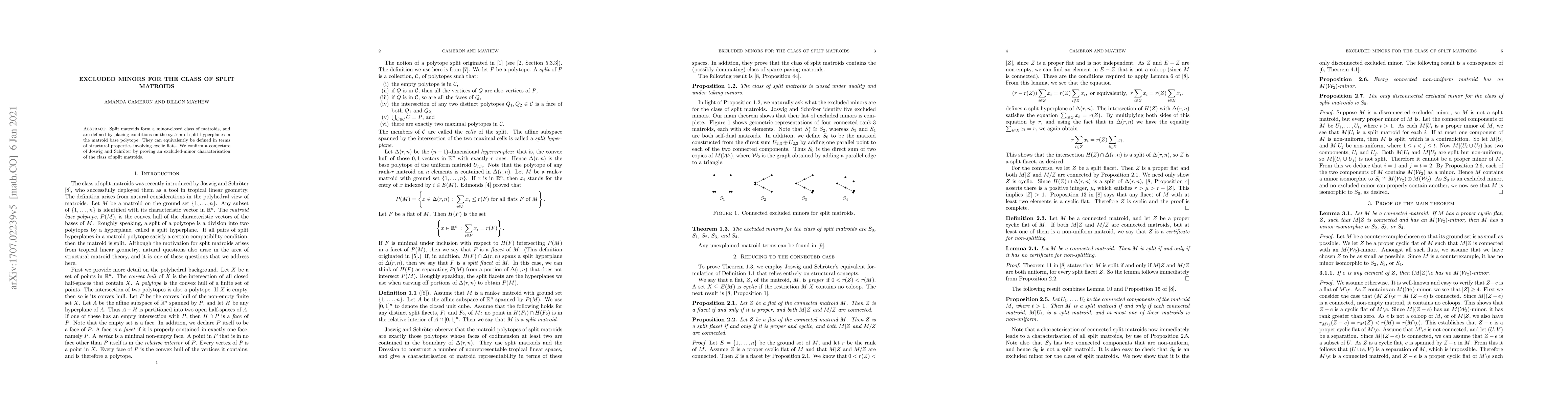 This paper confirms a conjecture by proving that the class of split matroids is characterized by a finite set of excluded minors, providing an excluded-minor characterisation for this minor-closed class defined by structural properties involving cyclic flats.