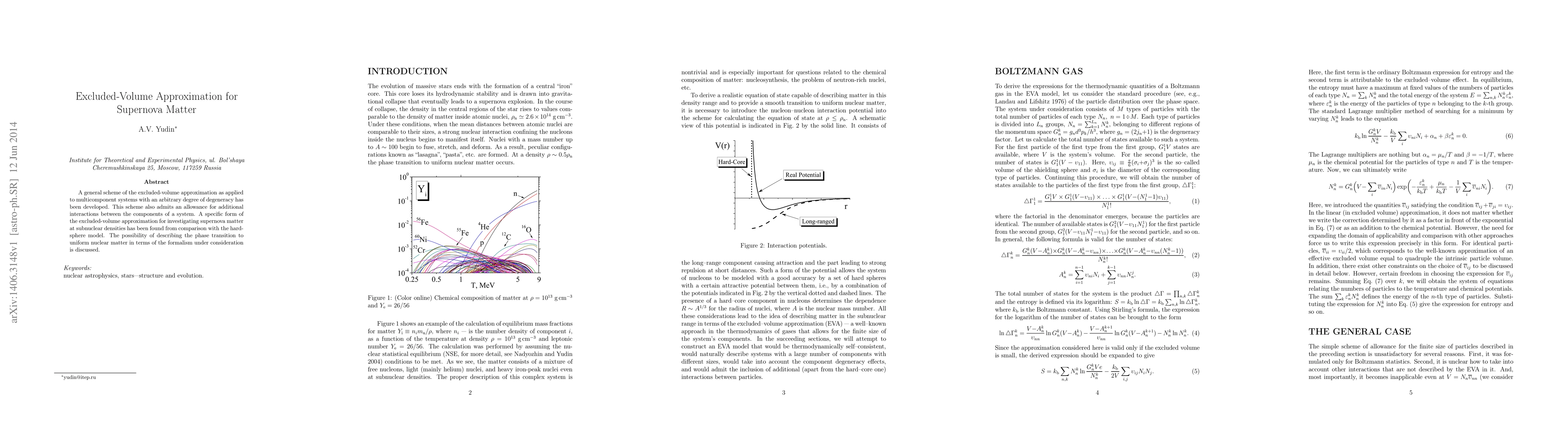 A general scheme of the excluded-volume approximation as applied to multicomponent systems with an arbitrary degree of degeneracy has been developed. This scheme also admits an allowance for additional interactions between the components of a system. A specific form of the excluded-volume approximation for investigating supernova matter at subnuclear densities has been found from comparison with the hard-sphere model. The possibility of describing the phase transition to uniform nuclear matter in terms of the formalism under consideration is discussed.