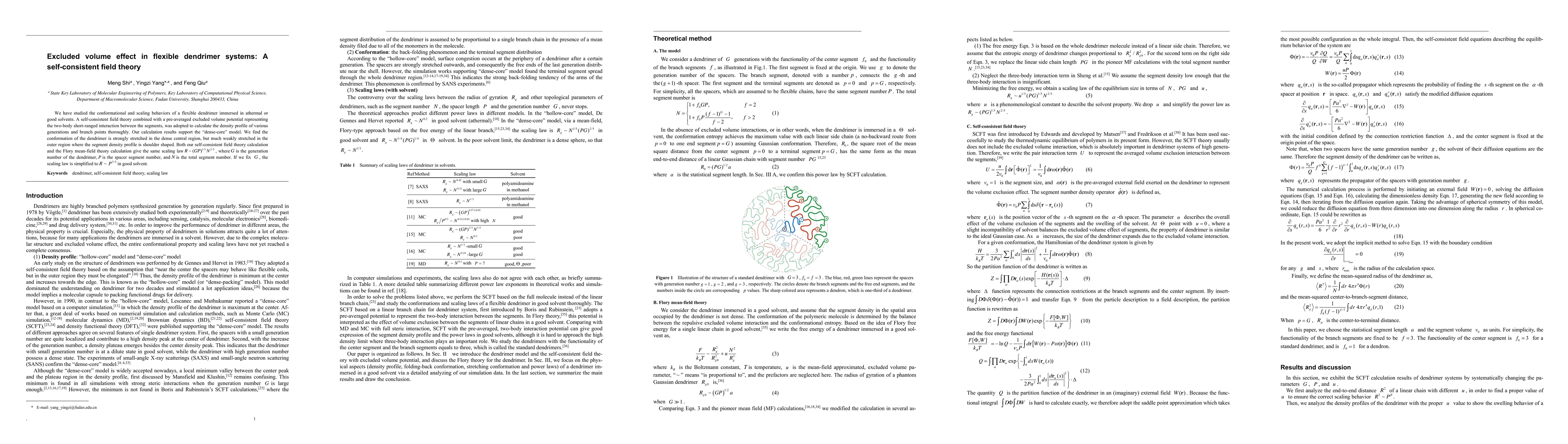 This study uses a self-consistent field theory to model flexible dendrimer systems in good solvents, finding that they adopt a 'dense-core' structure with strong stretching in the center and weak stretching in the outer region.