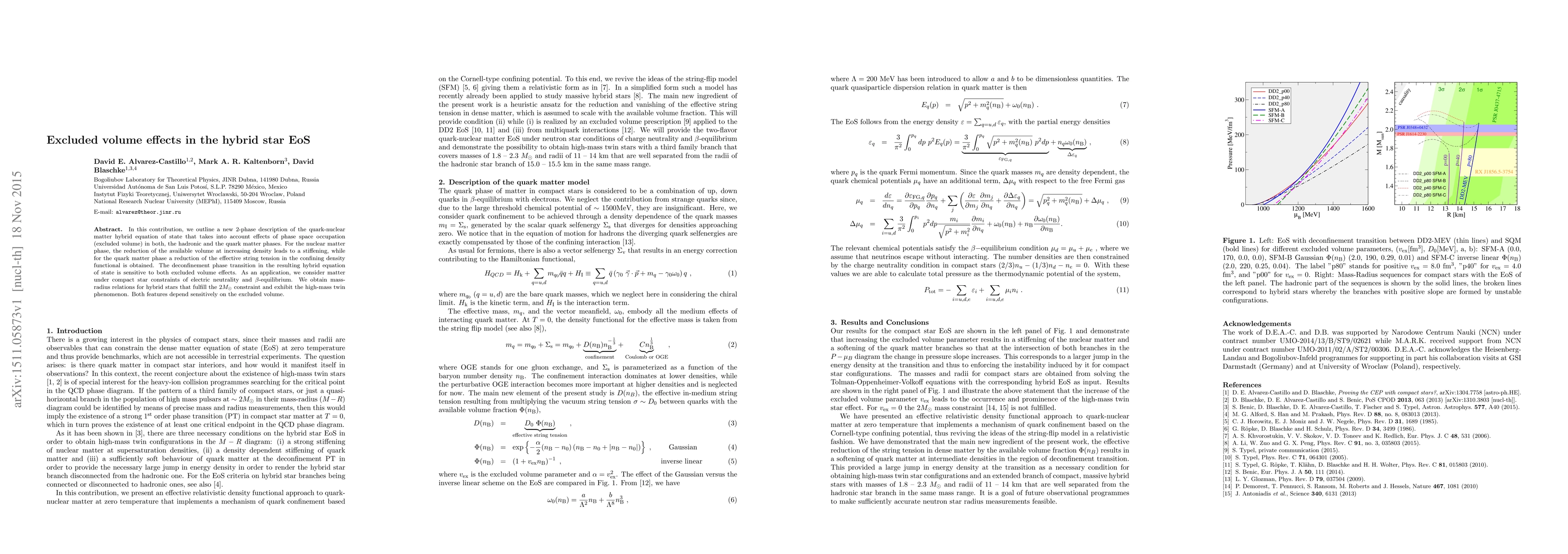 In this contribution, we outline a new 2-phase description of the quark-nuclear matter hybrid equation of state that takes into account effects of phase space occupation (excluded volume) in both, the hadronic and the quark matter phases. For the nuclear matter phase, the reduction of the available volume at increasing density leads to a stiffening, while for the quark matter phase a reduction of the effective string tension in the confining density functional is obtained. The deconfinement phase transition in the resulting hybrid equation of state is sensitive to both excluded volume effects. As an application, we consider matter under compact star constraints of electric neutrality and $\beta$-equilibrium. We obtain mass-radius relations for hybrid stars that fulfill the $2M_\odot$ constraint and exhibit the high-mass twin phenomenon. Both features depend sensitively on the excluded volume.