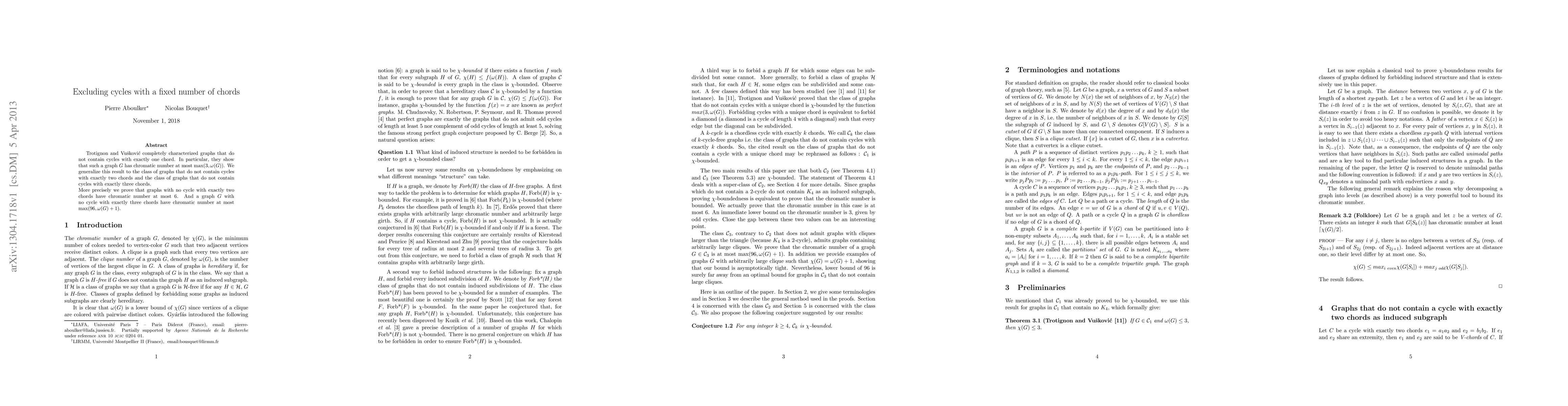 Research extends Trotignon and Vuskovic's work on graph cycles with a fixed number of chords, proving that graphs without 2-chord or 3-chord cycles have chromatic numbers at most 6 and 96 respectively.