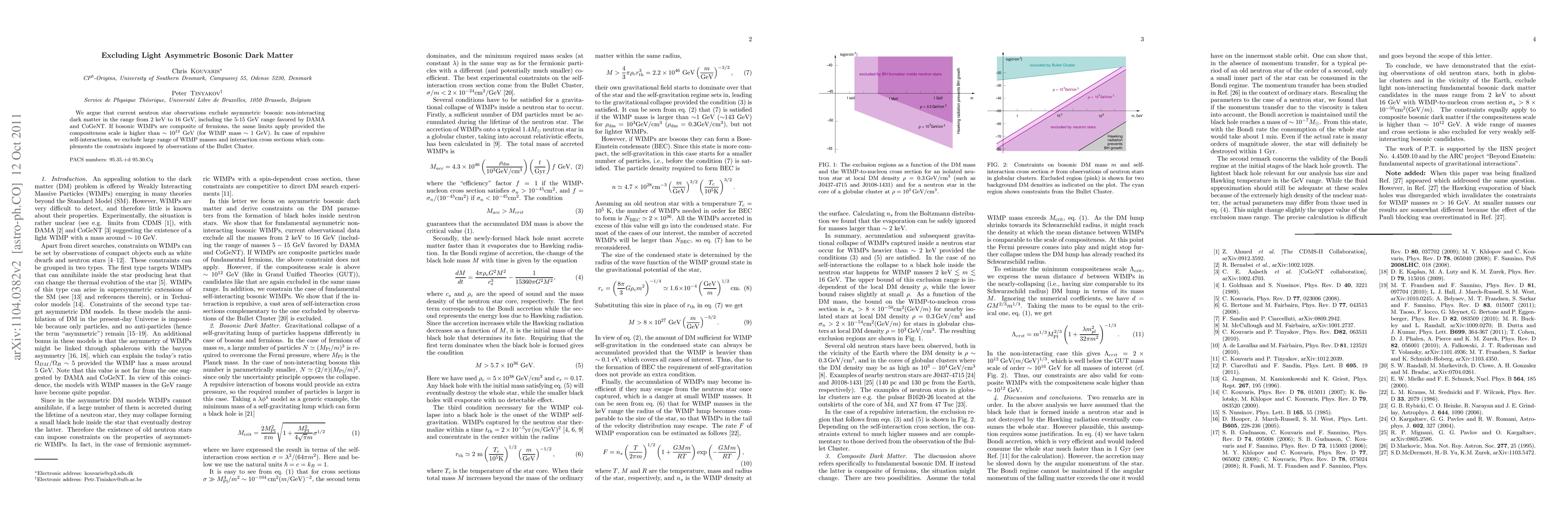 This paper argues that recent neutron star observations rule out asymmetric bosonic dark matter in the 2 keV to 16 GeV range, including the 5-15 GeV interval favored by DAMA and CoGeNT. It also extends these constraints to composite bosonic WIMPs if their compositeness scale is above ~10^12 GeV.