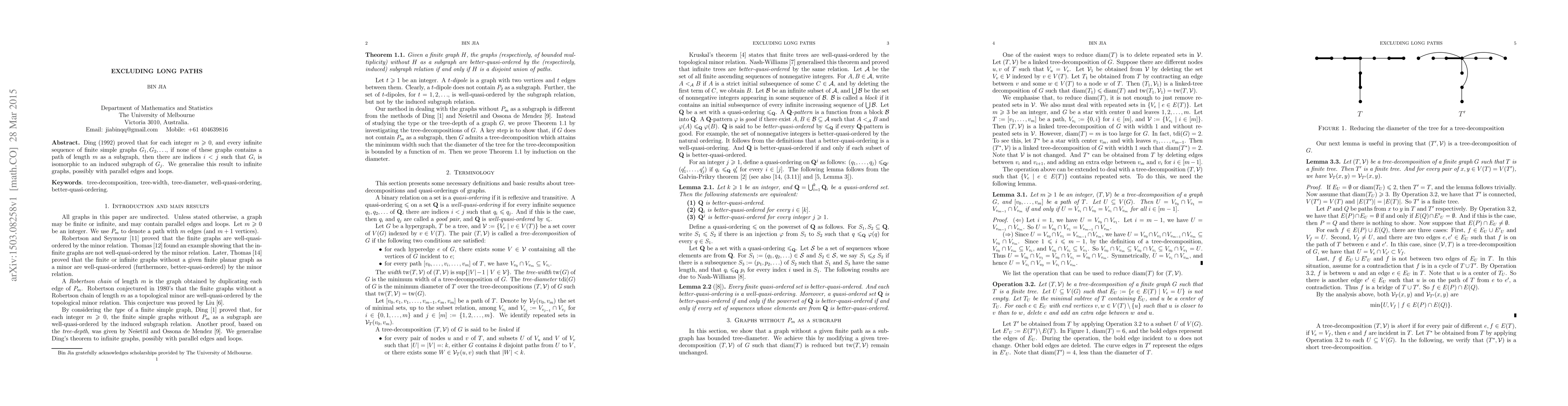 Ding (1992) proved that for each integer ${m} \geqslant 0$, and every infinite sequence of finite simple graphs $G_1, G_2, \ldots$, if none of these graphs contains a path of length ${m}$ as a subgraph, then there are indices $i < j$ such that $G_i$ is isomorphic to an induced subgraph of $G_j$. We generalise this result to infinite graphs, possibly with parallel edges and loops.