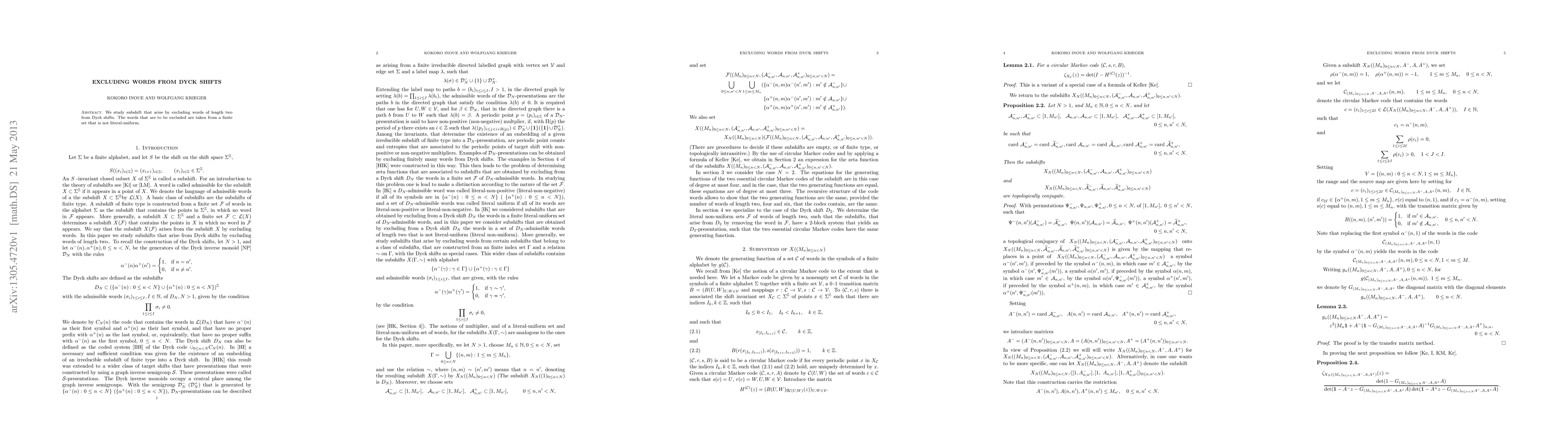 Summary: This paper investigates subshifts formed by removing specific non-literal-uniform words of length two from Dyck shifts, exploring their structural properties and implications.