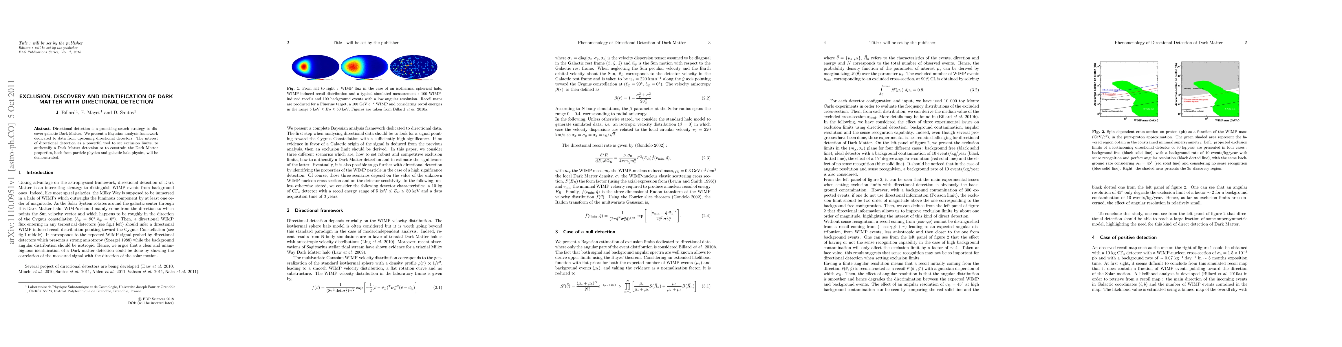 This paper introduces a Bayesian analysis framework for upcoming directional detectors aimed at discovering galactic Dark Matter, emphasizing its potential to set exclusion limits, authenticate detections, and constrain Dark Matter properties from both particle physics and galactic halo perspectives.