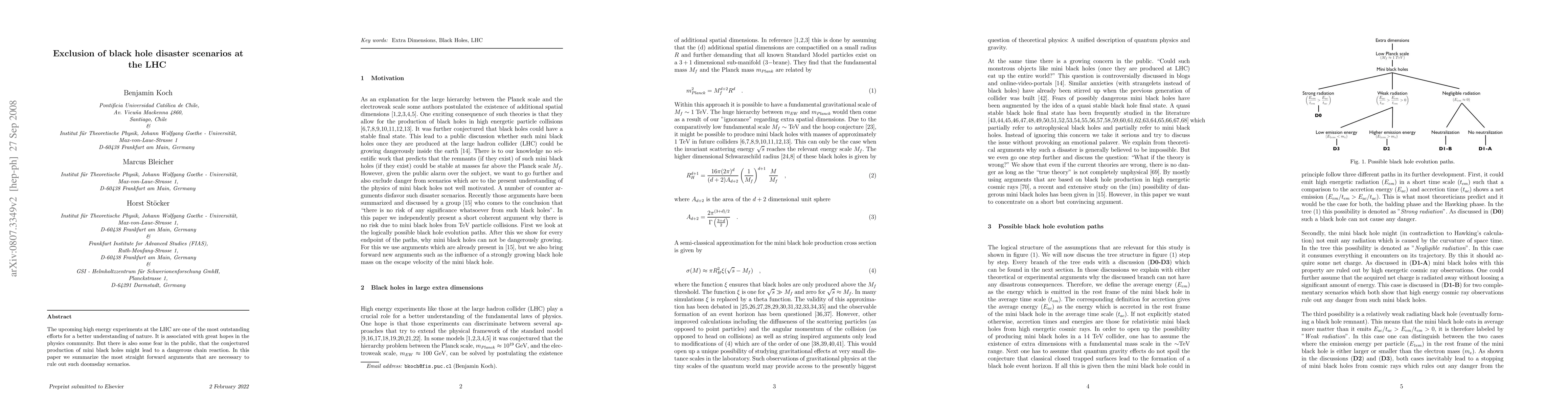 The upcoming high energy experiments at the LHC are one of the most outstanding efforts for a better understanding of nature. It is associated with great hopes in the physics community. But there is also some fear in the public, that the conjectured production of mini black holes might lead to a dangerous chain reaction. In this paper we summarize the most straight forward arguments that are necessary to rule out such doomsday scenarios.
