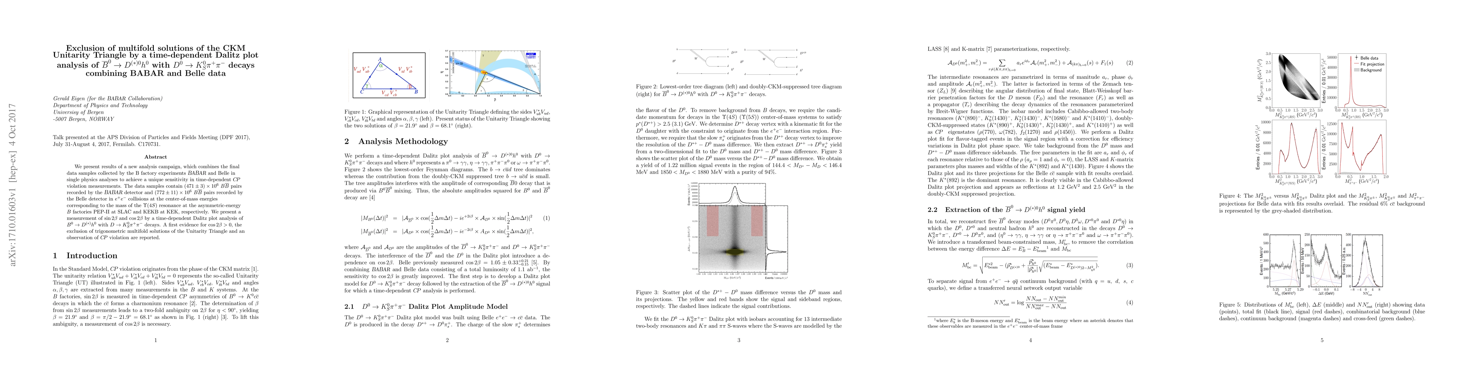 This paper combines BABAR and Belle data to perform a time-dependent Dalitz plot analysis of $B^0 \to D^{(*)} h^0$ decays, reporting evidence for $\cos 2\beta >0$ and the exclusion of multifold solutions of the CKM Unitarity Triangle, providing new insights into \CP\ violation.