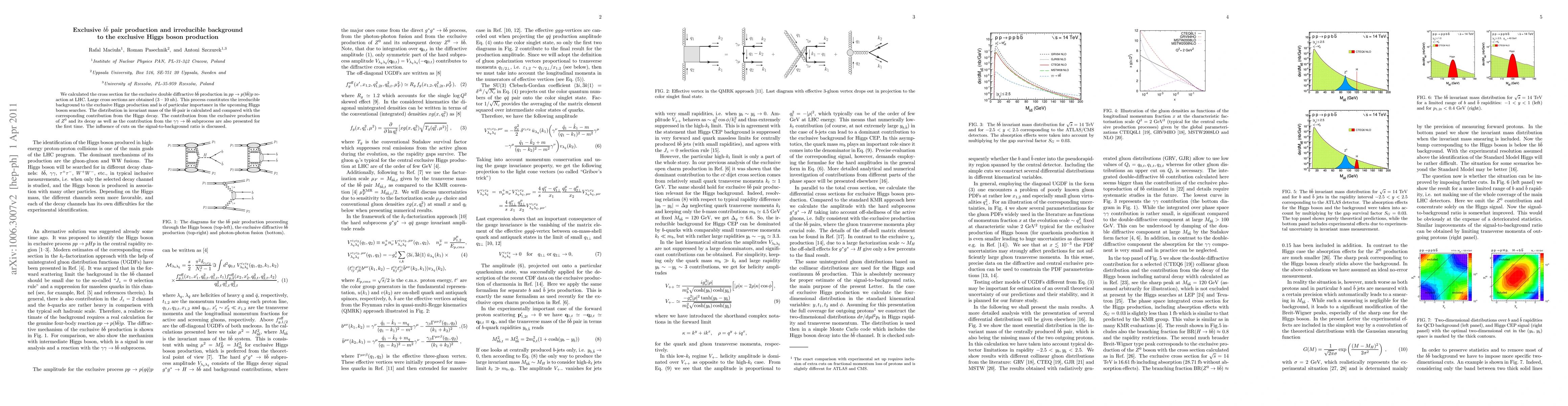 This paper calculates the cross section for exclusive double diffractive $b\bar b$ pair production at the LHC, finding large cross sections of 3-10 nb. This process serves as an irreducible background to exclusive Higgs boson production, crucial for future Higgs searches.