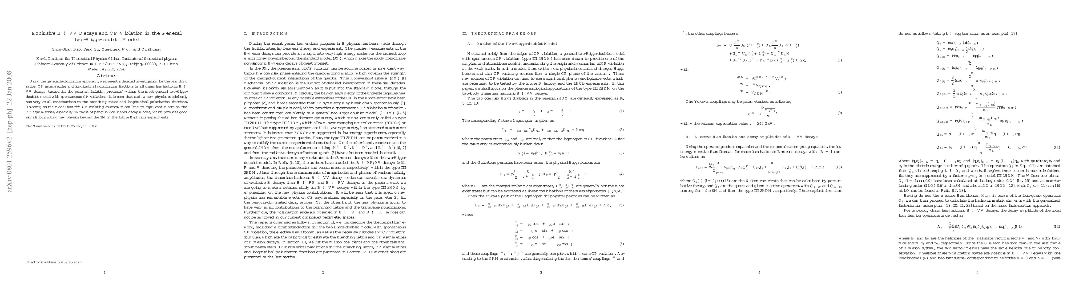 This paper investigates $B \to VV$ decays in the general two-Higgs-doublet model, finding minimal contributions to branching ratios and polarizations but significant CP-violating effects, particularly in penguin-dominated modes, offering promising signals for new physics beyond the Standard Model.