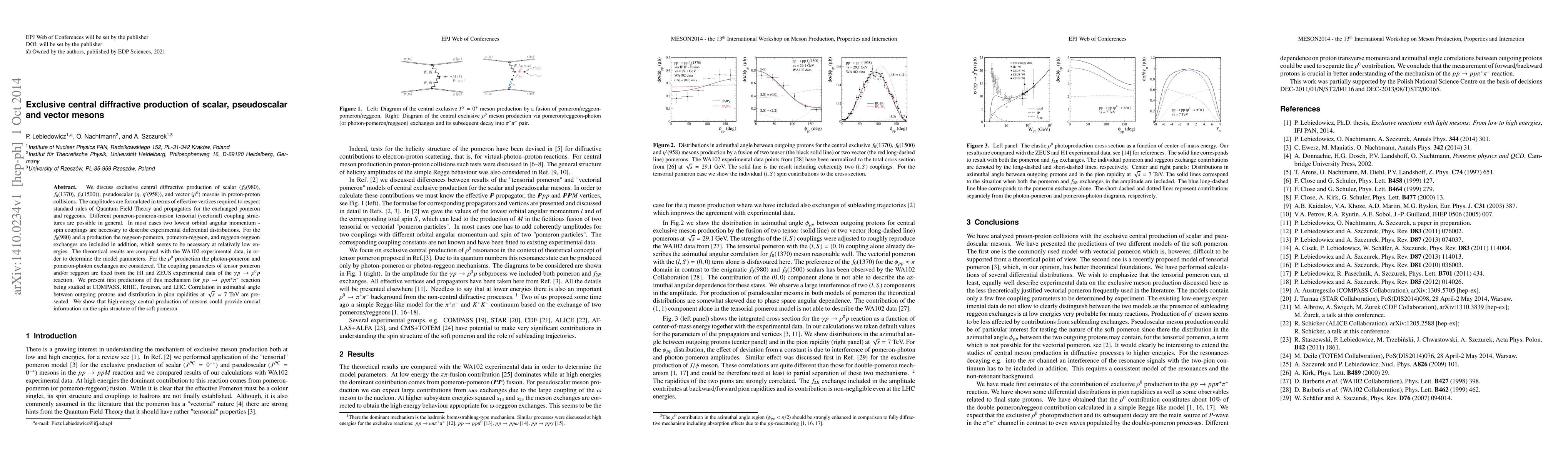 This paper explores the exclusive central diffractive production of various mesons in proton-proton collisions, formulating theoretical amplitudes in line with Quantum Field Theory. It compares model predictions with experimental data and presents first predictions for the $pp \to pp \pi^{+} \pi^{-}$ reaction, highlighting potential insights into the spin structure of the soft pomeron.