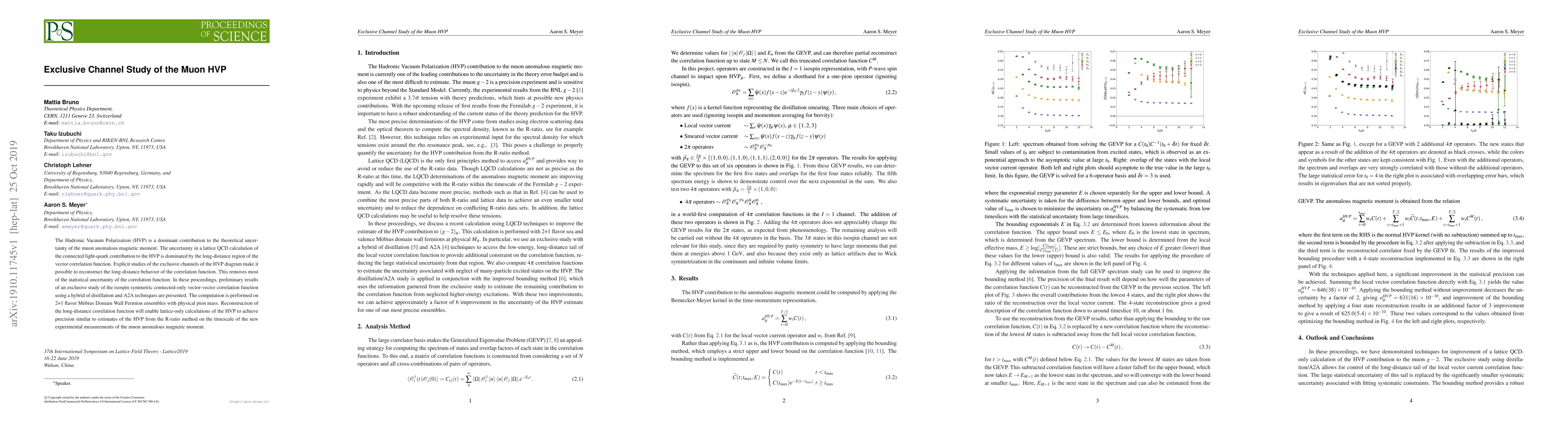 The Hadronic Vacuum Polarization (HVP) is a dominant contribution to the theoretical uncertainty of the muon anomalous magnetic moment. The uncertainty in a lattice QCD calculation of the connected light-quark contribution to the HVP is dominated by the long-distance region of the vector correlation function. Explicit studies of the exclusive channels of the HVP diagram make it possible to reconstruct the long-distance behavior of the correlation function. This removes most of the statistical uncertainty of the correlation function. In these proceedings, preliminary results of an exclusive study of the isospin symmetric connected-only vector-vector correlation function using a hybrid of distillation and A2A techniques are presented. The computation is performed on 2+1 flavor M\"obius Domain Wall Fermion ensembles with physical pion mass. Reconstruction of the long-distance correlation function will enable lattice-only calculations of the HVP to achieve precision similar to estimates of the HVP from the R-ratio method on the timescale of the new experimental measurements of the muon anomalous magnetic moment.