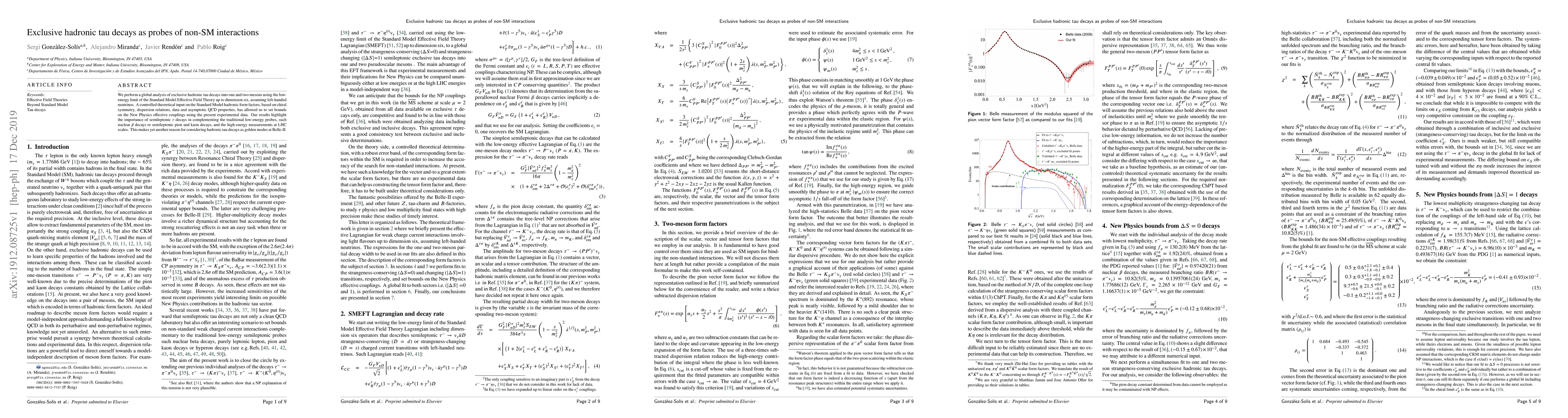 This paper analyzes exclusive hadronic tau decays to probe non-Standard Model interactions using the Standard Model Effective Field Theory. It sets bounds on New Physics couplings, emphasizing the significance of semileptonic tau decays in complementing traditional low-energy and high-energy measurements.