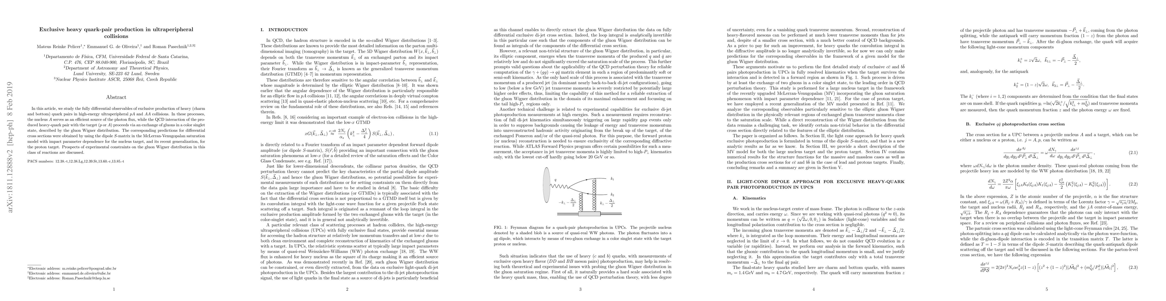 In this article, we study the fully differential observables of exclusive production of heavy (charm and bottom) quark pairs in high-energy ultraperipheral $pA$ and $AA$ collisions. In these processes, the nucleus $A$ serves as an efficient source of the photon flux, while the QCD interaction of the produced heavy-quark pair with the target ($p$ or $A$) proceeds via an exchange of gluons in a color singlet state, described by the gluon Wigner distribution. The corresponding predictions for differential cross sections were obtained by using the dipole $S$-matrix in the McLerran--Venugopalan saturation model with impact parameter dependence for the nucleus target, and its recent generalization, for the proton target. Prospects of experimental constraints on the gluon Wigner distribution in this class of reactions are discussed.