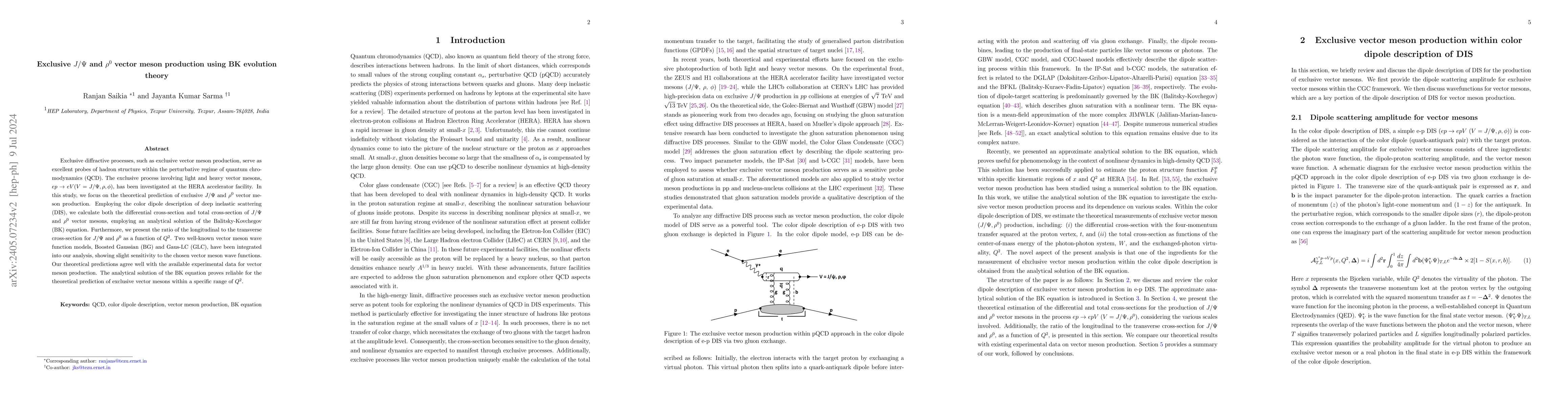 This paper uses the color dipole description and the BK evolution theory to theoretically predict exclusive $J/\Psi$ and $\rho^0$ vector meson production at HERA, comparing differential and total cross-sections, and showing agreement with experimental data. The analytical solution of the BK equation proves effective within a specific $Q^2$ range.