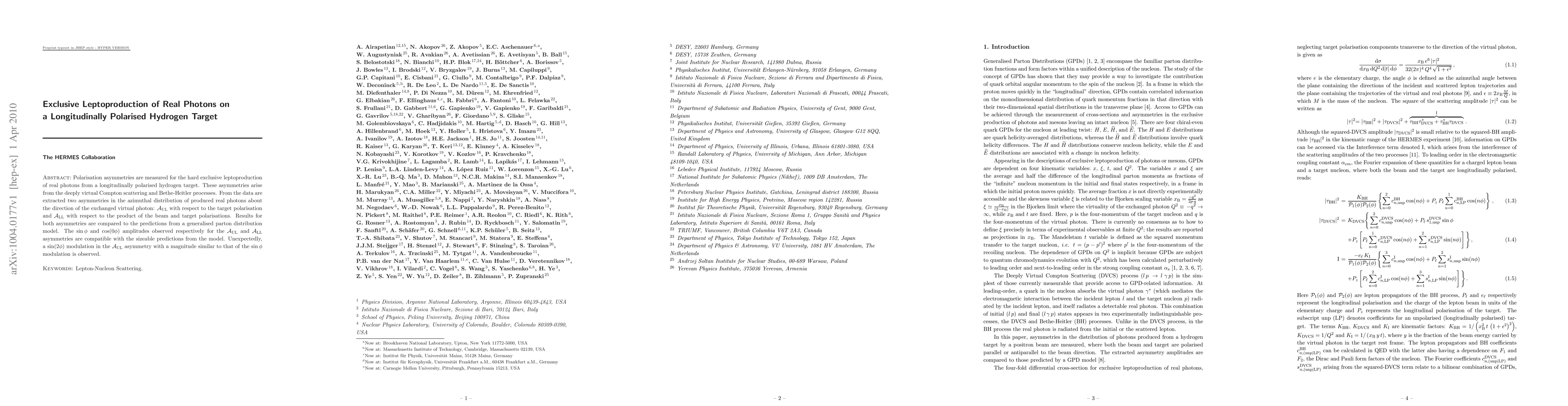 This paper measures polarisation asymmetries in the exclusive leptoproduction of real photons from a longitudinally polarised hydrogen target, revealing significant sin(phi) and cos(0*phi) modulations in the azimuthal distributions. An unexpected sin(2*phi) modulation is also observed, challenging existing generalised parton distribution models.