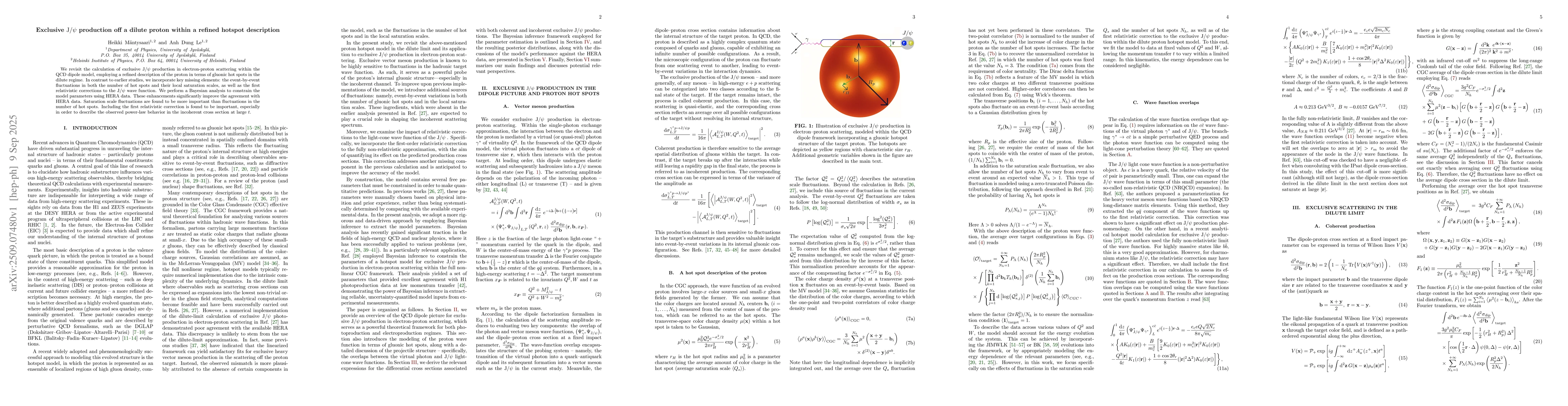 We revisit the calculation of exclusive $\mathrm{J}/\psi$ production in electron-proton scattering within the QCD dipole model, employing a refined description of the proton in terms of gluonic hot spots in the dilute regime. In contrast to earlier studies, we incorporate key missing elements: the event-by-event fluctuations in both the number of hot spots and their local saturation scales, as well as the first relativistic corrections to the $\mathrm{J}/\psi$ wave function. We perform a Bayesian analysis to constrain the model parameters using HERA data. These enhancements significantly improve the agreement with HERA data. Saturation scale fluctuations are found to be more important than fluctuations in the number of hot spots. Including the first relativistic correction is found to be important, especially in order to describe the observed power-law behavior in the incoherent cross section at large $t$.