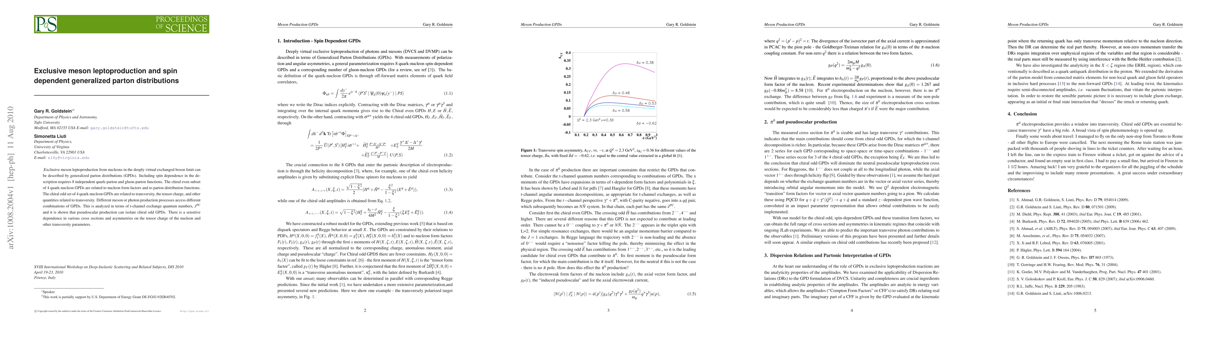This paper explores exclusive meson leptoproduction through generalized parton distributions (GPDs) in the deeply virtual exchanged boson limit, emphasizing the spin-dependent GPDs and their relation to nucleon form factors and transversity. It highlights the sensitivity of cross sections and asymmetries to the tensor charge and other transversity parameters, particularly in pseudoscalar production.