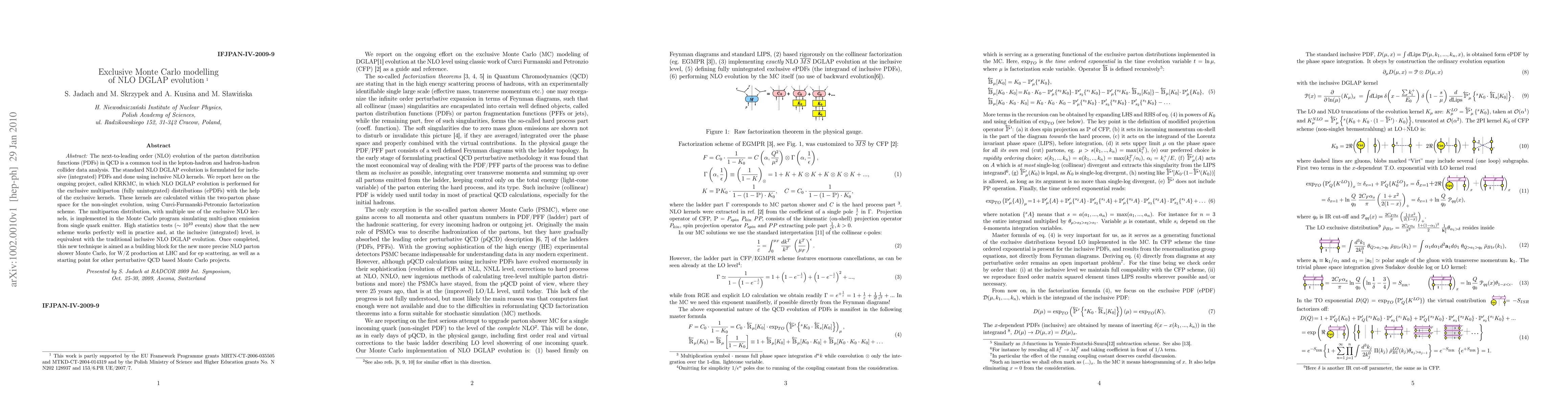 The next-to-leading order (NLO) evolution of the parton distribution functions (PDFs) in QCD is a common tool in the lepton-hadron and hadron-hadron collider data analysis. The standard NLO DGLAP evolution is formulated for inclusive (integrated) PDFs and done using inclusive NLO kernels. We report here on the ongoing project, called KRKMC, in which NLO DGLAP evolution is performed for the exclusive multiparton (fully unintegrated) distributions (ePDFs) with the help of the exclusive kernels. These kernels are calculated within the two-parton phase space for the non-singlet evolution, using Curci-Furmanski-Petronzio factorization scheme. The multiparton distribution, with multiple use of the exclusive NLO kernels, is implemented in the Monte Carlo program simulating multi-gluon emission from single quark emitter. High statistics tests ($\sim 10^{10}$ events) show that the new scheme works perfectly well in practice and, at the inclusive (integrated) level, is equivalent with the traditional inclusive NLO DGLAP evolution. Once completed, this new technique is aimed as a building block for the new more precise NLO parton shower Monte Carlo, for W/Z production at LHC and for ep scattering, as well as a starting point for other perturbative QCD based Monte Carlo projects.