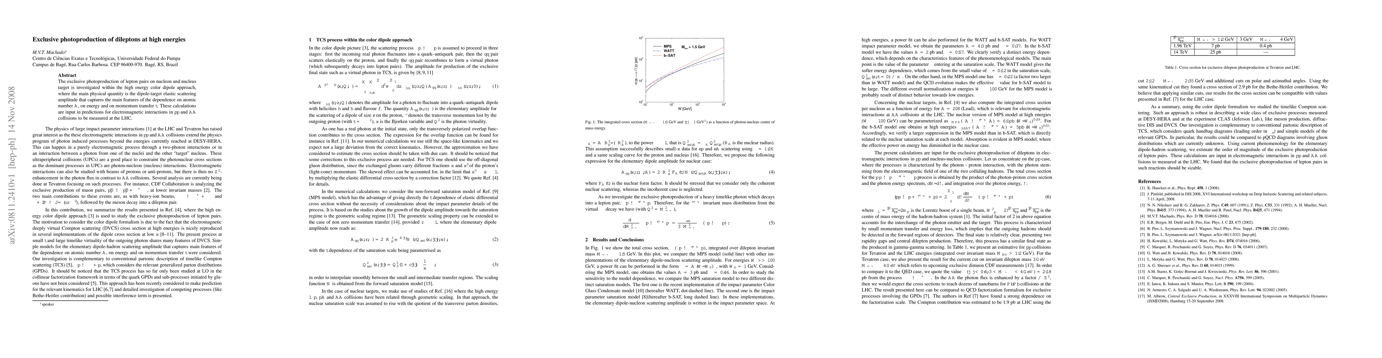 The exclusive photoproduction of lepton pairs on nucleon and nucleus target is investigated within the high energy color dipole approach, where the main physical quantity is the dipole-target elastic scattering amplitude that captures the main features of the dependence on atomic number A, on energy and on momentum transfer t. These calculations are input in predictions for electromagnetic interactions in pp and AA collisions to be measured at the LHC.