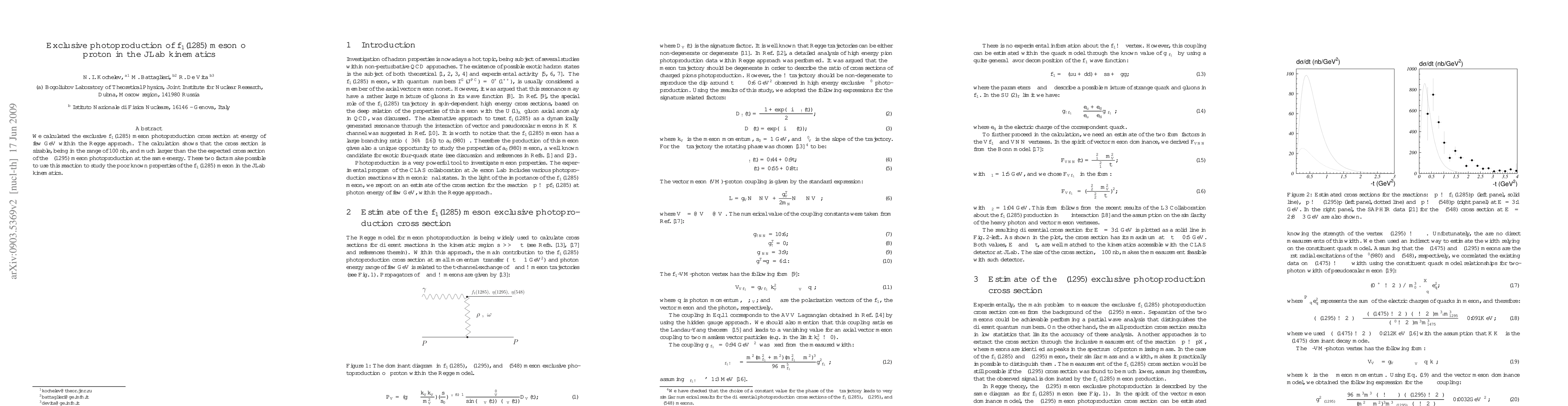 Within the Regge approach, we calculated the exclusive $f_1(1285)$ meson photoproduction cross section at energy of few GeV. The calculation shows that the cross section is sizable, being in the range of 100 nb, and much larger than the the expected cross section of the $\eta(1295)$ meson photoproduction at the same energy. These two facts make possible to use this reaction to study the poor known properties of the $f_1(1285)$ meson in the JLab kinematics.